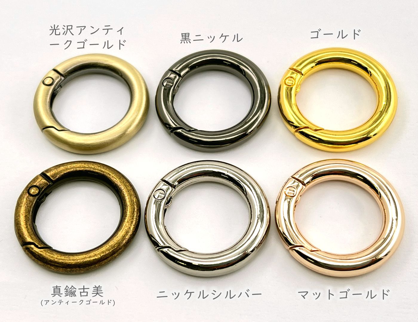 「キR2805」 カラビナ 丸型 キーリング 直径28mm 4個入/卸40個入 内径19mm 線径5mm カラビナ 丸 キーリング 金具 キーホルダーパーツ バッグリング 頑丈 シルバー ゴールド 黒ニッケル 真鍮古美 アンティーク 全6色