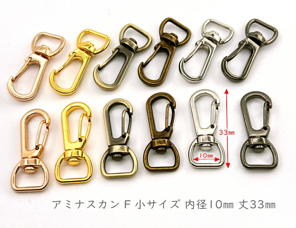 「ナF10小」 ナスカン 10mm 10個入り 小サイズ 縦33mm 網ナスカン アミナスカン 丈夫 回転フック ベルト幅10mm なすかん 尾内径10mm レザークラフト金具