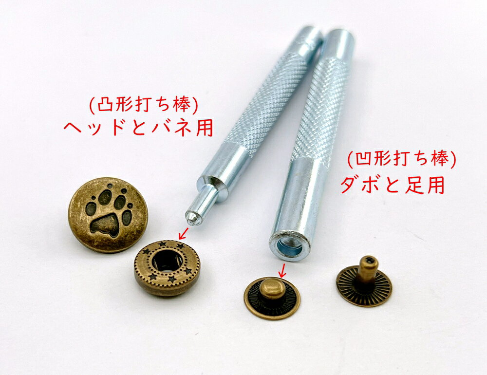 バネホック用打ち棒 2本セット ショップ内バネホック用 選べる 頭直径10mm用、12mm用 ショップ内飾りバネホック 各サイズ/形飾りバネホック共用(#633) バネホック10mm用手打棒(#655)