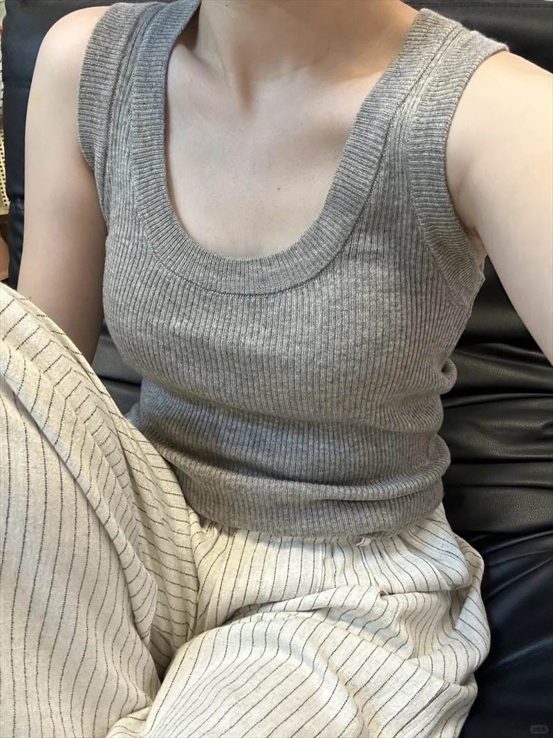 レディース トップス インナー タンクトップ 袖なし ノースリーブ Uネック 襟なし ノーカラー タイト スリム 細身 スマート リブ シンプル カジュアル 上品 おしゃれ こなれ感 ベーシック 無地 春 夏 学生 学校 通学 お出かけ イベント 旅行 公園 休日 ショッピング