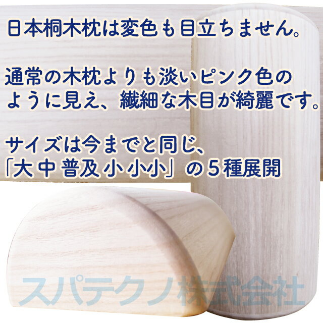 木枕のサイズは、画像を目安にお選び下さいませ。 ※低めをお選び頂く方が良いかと思います。 日本桐木枕 小小(高さ6cm) 日本桐木枕 小(高さ6.5cm) 日本桐木枕 普及(高さ7cm) 日本桐木枕 中(高さ7.5cm) 日本桐木枕 大(高さ8cm) 木枕 小小(高さ6cm) 木枕 小(高さ6.5cm) 木枕 普及(高さ7cm) 木枕 中(高さ7.5cm) 木枕 大(高さ8cm) 他のサイズをご希望のお客様はこちら 「平床」の商品一覧はこちら 硬枕 木枕 日本桐製 商品説明 定番商品の木枕からついに高級日本桐製のものが登場! 木枕愛用者の方、末長く使用したい方、買い替えを検討している方におすすめです。 日本桐製の木枕は、変色も目立ちづら区なっております。 通常の木枕より淡くピンクがかったような色味にみえ、繊細な木目が綺麗です。 サイズ展開は今までと同じ 大、中、普及、小、小小の5種類です。 木製の硬い枕を使うことにより睡眠中に体の歪みを矯正します。 ※木枕が届いたら、まずは透明のビニールを外さずにお試しいただくことをお勧めいたします。 ビニールを外されますと、交換返品はお受けできません。 サイズ 小: 高さ6.5cm、幅27cm、奥行き13cm 薬指の付け根の筋から先端までが約6.5cmの方用です。 重さ 約330g ※裏面にハンコでのサイズ表記があります。手作業のためにじんでいる場合もありますのでご了承ください。 ※これから梱包していくものには、当店オリジナルの木枕ステッカーが貼ってあります。木枕について 西式健康法・甲田療法の定番アイテムの木枕 長年木枕を作ってくれている職人さんによる手作りです。1つ1つ丁寧に作ってくださっているため上質な木枕となっております。素材は総桐製です。 木製の硬い枕を使うことにより睡眠中に体の歪みを矯正します。 期待できる効果 ◯首の骨(頚骨)のずれ、副脱臼を矯正する ◯肩こりの予防 ◯小脳や延髄を刺激し、手足の麻痺を予防 ◯耳鼻咽喉、歯痛、気管支炎の予防 ◯甲状腺症の予防 最初のうちは10〜20分ほど使用し、少しずつ慣れていきます。痛みを感じるうちは木枕にタオルなどを巻いたりしましょう。(画像参照) 右手薬指の長さが、枕の高さ(半径)の目安です。 サイズがわかりにくい場合は、身長から見るか、小さめのサイズをお選びください。 ※詳しくは画像の説明をご覧ください。 ※裏面にハンコでのサイズ表記があります。手作業のためにじんでいる場合もありますのでご了承ください。 ※これから梱包していくものには、当店オリジナルの木枕ステッカーが貼ってあります。