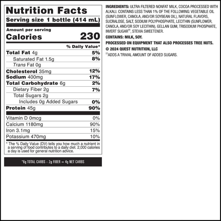 【最大1400円OFFクーポン】クエスト プロテインミルクシェイク チョコレート味 414ml 12本入り RTD: Quest 45g: Chocolate (12/14oz) 【お取り寄せ商品】【合わせて買いたい】