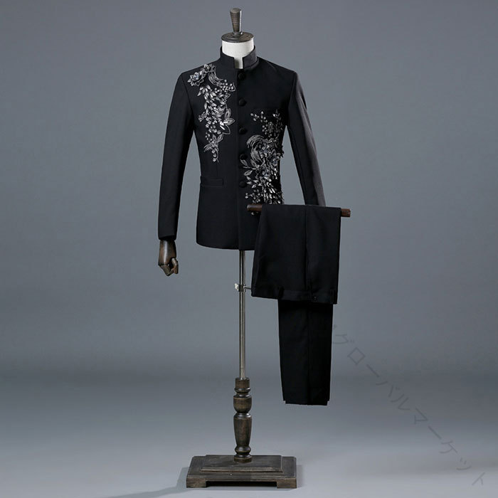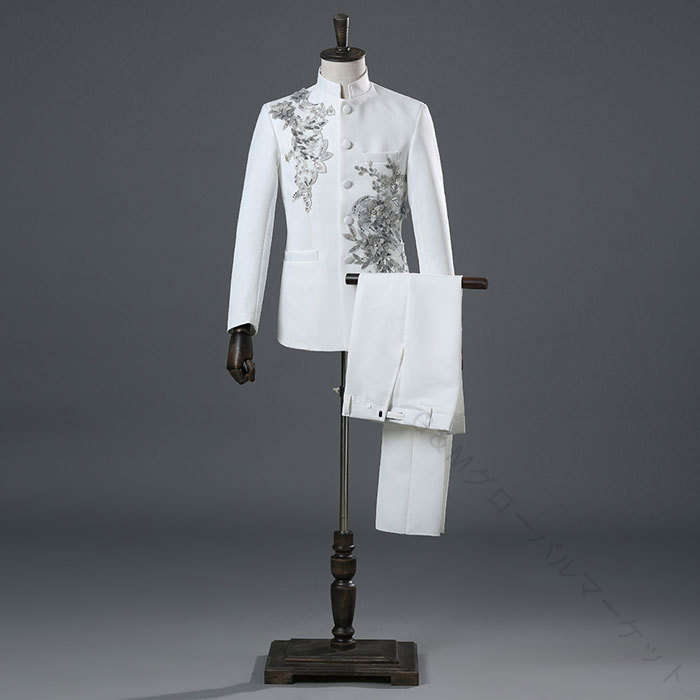 メンズ スーツ ステージ衣装 スパンコール カラースーツ ジャケット パンツ 花刺繍 キラキラ 4色 スーツセット 刺繍 花柄 礼服 紳士用 舞台衣装 司会者 合唱団 コンサート パーティー スリム 男性 宴会 結婚式 イベント 二次会 スタイリッシュ カラオケ衣装 大人用 S-3XL 多
