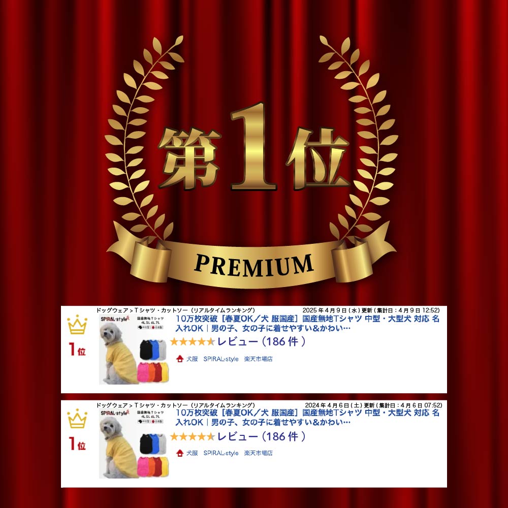 犬服サイズ 背丈(cm)胸囲(cm)首周り(cm)4L46.060〜6637〜415L51.066〜7241〜446L56.072〜7844〜487L61.078〜8548〜53※注)服のサイズではなくワンちゃんのサイズです。あくまでも目安ですのでデザイン、またはワンちゃんの個体差や毛量によって若干サイズが異なる場合がございます。必ず事前にワンちゃんのサイズを図ったうえでお選び下さい。生産国日本素材綿95% ポリウレタン5%ご注意ください!・淡色物とは一緒に洗わず単独洗いをしてください・染料の性質上、汗や摩擦により色落ちしたり他に色移りすることがありますのでご注意ください。・色が落ちた場合には、移った物を早めに洗濯してください。・濡れたままで長時間放置しないでください。・洗う度に脱色し、風合いが変わります。・タンブラー乾燥はお避け下さい。・プリントはアイロン、摩擦などで落ちる事があります。・綿製品、ニット製品は洗濯時に多少伸び縮みする場合があります。商品の説明・スタッフコメント肌寒さを感じる秋冬にぴったりの肉厚の生地が特徴!わんちゃんのお洋服は寒さへの対策はもちろん、抜け毛や汚れの防止にも活躍します!のびのびストレッチが効いている生地なのでわんちゃんの頭からすっぽり被せるだけでOK♪シンプルなデザインだから色違いで持って毎日お着替えしても楽しいですね♪ >デザインで選ぶ愛犬ファッション可愛い雰囲気を演出できるお揃いペアルックは、お出かけに最適です。面白いアクセントを取り入れた、かっこいいデザインのドッグウェア。春や夏の暑い季節でも快適に過ごせる工夫が光るデザインで選ぶ愛犬ファッション着やすさと着脱簡単さを兼ね備えた便利な服。部屋着としてリラックスできる柔らかさ。家着としても毎日の暮らしに馴染む快適さ。多頭飼いで揃えて散歩に出かけられるデザイン。ギフト・イベントにハロウィンやクリスマスを彩るおくりものとして人気があります。SPIRAL-style(スパイラルスタイル)は、犬服と犬用グッズの専門店です。国産の高品質な洋服や、ギフトにも最適な名前入り服、日常使いに嬉しいお手頃価格のペットグッズをご用意。さらに有名アウトドアブランドやファッションブランドの犬服も取り扱っています。\10万枚突破!名入れOKの人気服/毎日着たくなる快適さと、どんな子にも似合うシンプルデザイン。春夏のお出かけにぴったりな1枚です。この服は、春夏はもちろん、秋冬のインナー使いとしてもおすすめ。犬の服として人気の「かわいい」「おしゃれ」「着せやすい」が揃った1枚。抜け毛・汚れ防止にも役立ちます。中型・小型犬・女の子・男の子問わず着用OK! 毎日の着せ替えがラクになる!簡単&スムーズな着脱ポリウレタン混のストレッチ生地で伸縮性が抜群。ワンちゃんが動いても着せやすく、脱がせるのもスムーズ。忙しい朝やお散歩前の準備がグッと楽に!!何度洗ってもヨレにくい!丈夫で長持ち日本で仕上げた、こだわりの一枚。しっかりとした作りで型崩れしにくく繰り返し洗っても長く愛用できます。シンプルだから、どんな着こなしも自由自在無地デザインで、重ね着にもピッタリ。刺繍やプリントでアレンジも可能!特別な1枚を作る楽しみも。豊富なサイズ展開!どんなワンちゃんにもぴったり小型犬から大型犬まで幅広いサイズ展開で、ジャストサイズが見つかる!フィット感がよく、動きやすいから快適に過ごせる。おしゃれなカラーバリエーションで選ぶ楽しさベーシックカラーからアクセントカラーまで揃って愛犬に似合う色を選べる。多頭飼いなら、お揃いコーデも楽しめる!(上)モデル:ちぇり(チワワ) 着用サイズ:M 体重:2.8kg 胴回り:36cm 首周り:23cm 背丈:25cm(下)モデル:モコ(ヨークシャーテリア) 着用サイズ:M 体重:7kg 胴回り:40cm 首周り:23cm 背丈:42cm(上)モデル:マナ(ゴールデン・レトリバー) 着用サイズ:7L 体重:30kg 胴回り:82cm 首周り:52cm 背丈:64cm(下)モデル:ラキ(ゴールデンレトリバー) 着用サイズ:7L 体重:36kg 胴回り:82cm 首周り:52cm 背丈:60cm同シリーズの国産Tシャツ当日発送いたします!平日14時まで、土、日曜日は午前11時までのご注文、ご入金で当日発送いたします!デザインで選ぶ愛犬ファッション可愛い雰囲気を演出できるお揃いペアルックは、お出かけに最適です。遊び心のある面白い雰囲気と、かっこいい印象を兼ね備えたドッグウェア。春から夏にかけて軽やかに楽しめる快適な一枚デザインで選ぶ愛犬ファッション着やすくて着脱簡単だから毎日の支度もスムーズ。部屋着としてリラックスできる柔らかさ。家着としても毎日の暮らしに馴染む快適さ。多頭飼いの子たちと一緒に散歩を楽しめる服。ギフト・イベントにハロウィンやクリスマスを彩るおくりものとして人気があります。