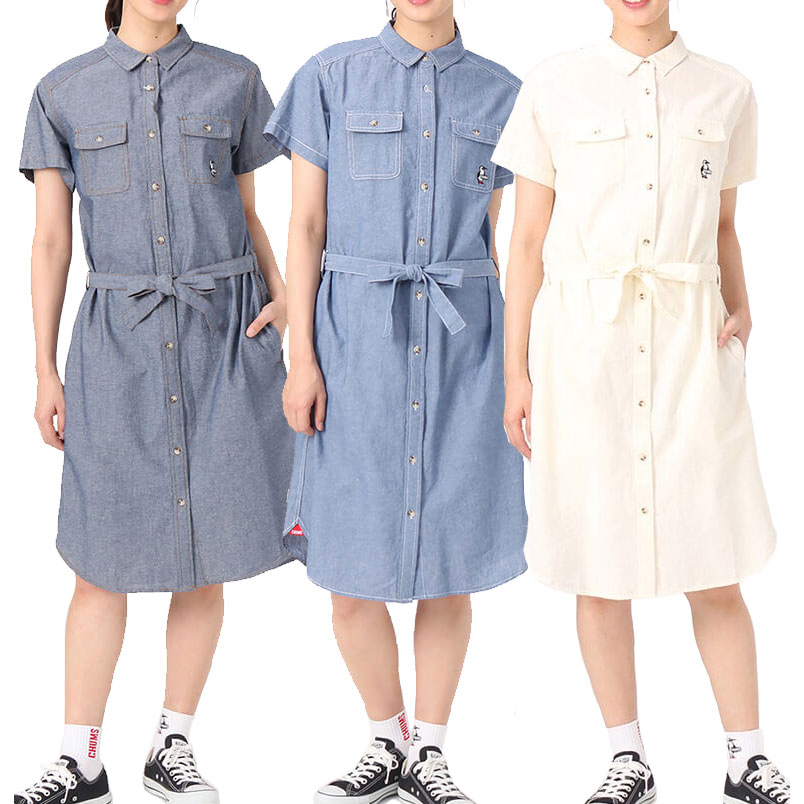 SALE チャムス ビーバーヤーンダイドシャンブレーショートスリーブドレス CH18-1288 CHUMS Beaver Yarn-Dyed Chambray S/S Dress【送料無料】半袖シャツワンピース