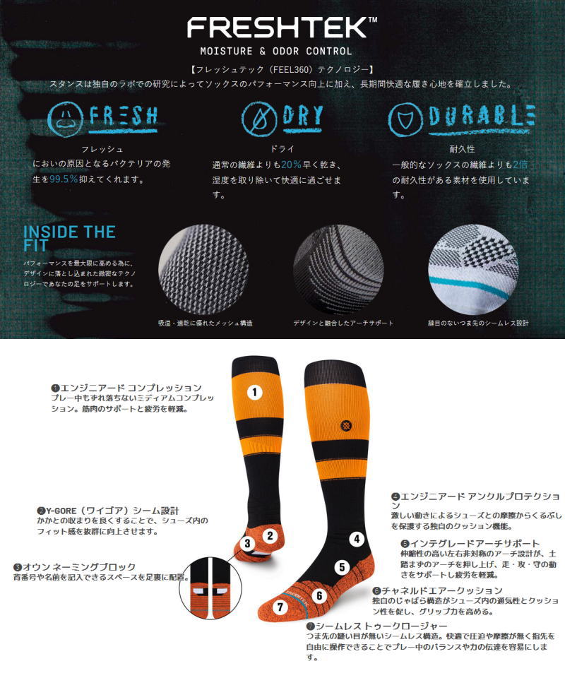 スタンス ソックス 野球専用ソックス メンズ ストッキング 野球 靴下 A759A23STR アンダーソックス MLB公認 筋肉サポート 疲労軽減 快適 速乾 フィット 試合 練習 一般野球 軟式 硬式 ゆうパケット対応