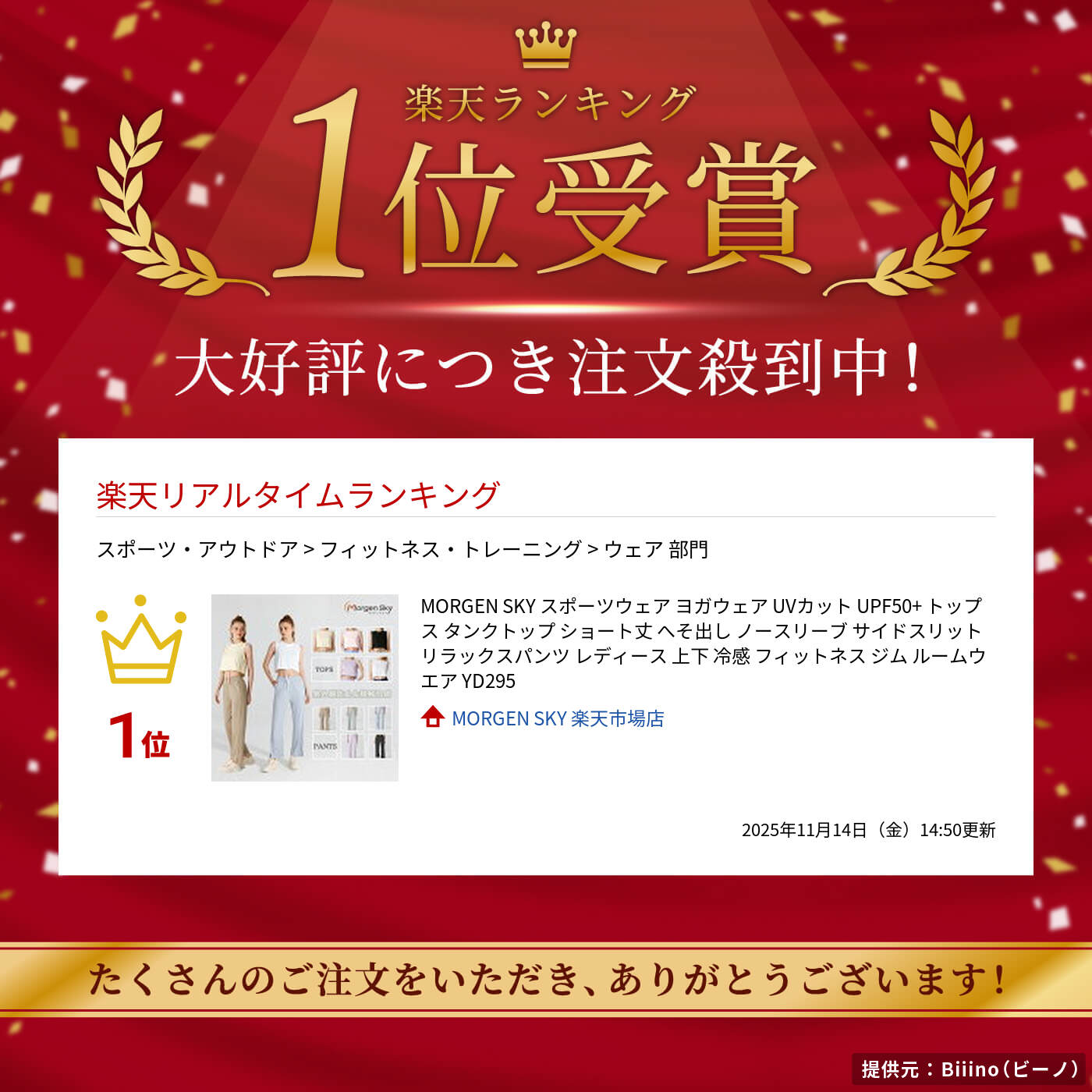 MORGEN SKY スポーツウェア ヨガウェア UVカット UPF50+ トップス タンクトップ ショート丈 へそ出し ノースリーブ サイドスリット リラックスパンツ レディース 上下 冷感 フィットネス ジム ルームウエア YD295