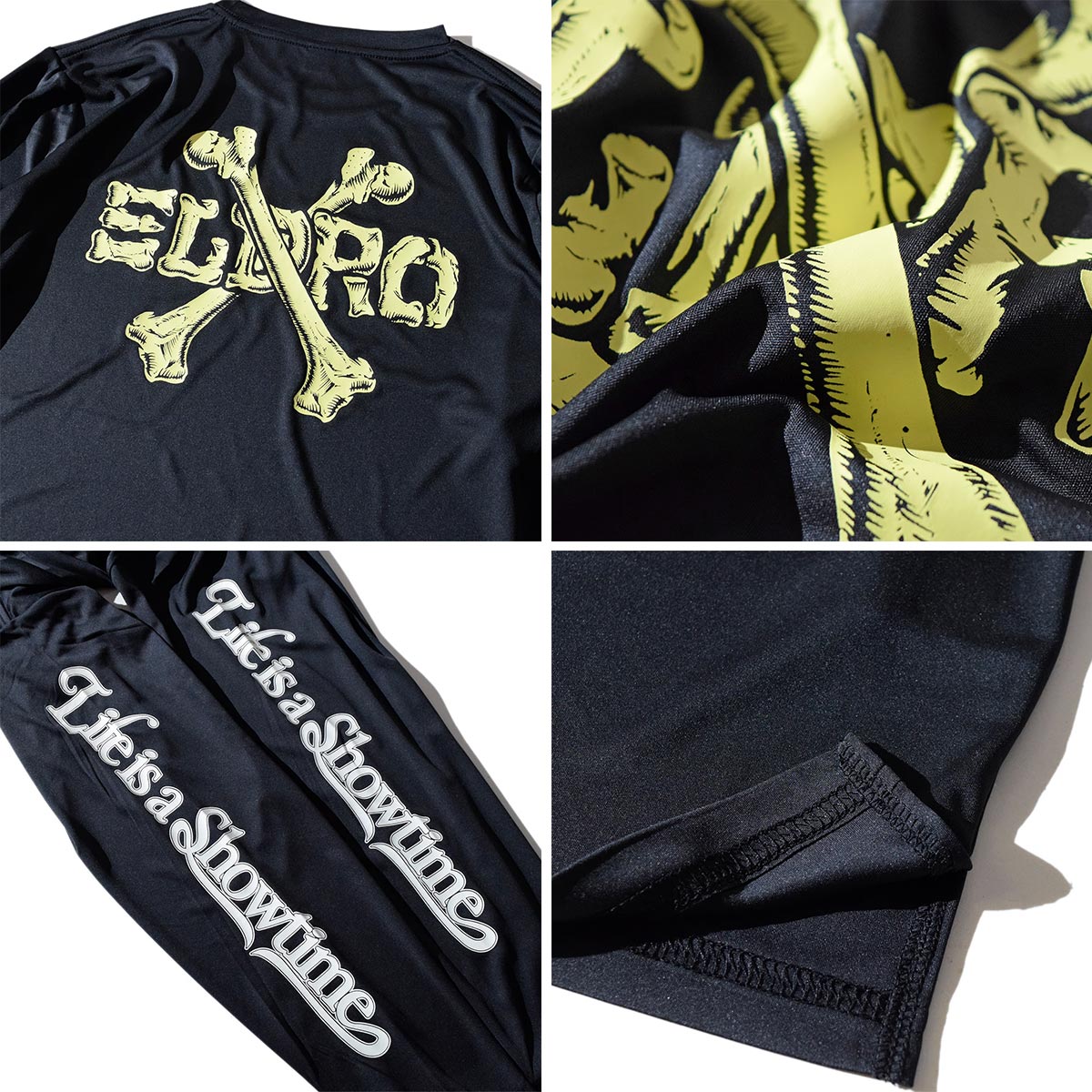 【素材】ポリエステル100%【サイズチャート】S:肩幅44/身幅49/着丈65/袖丈59cmM:肩幅47/身幅52/着丈68/袖丈61cmL:肩幅50/身幅55/着丈71/袖丈63cmXL:肩幅54/身幅59/着丈73/袖丈65cm【商品説明】エルドレッソが得意とするクロスボーンモチーフを背中に、かの有名な90年代のヒットチューンからピックアップしたポジティブなワードを両袖にプリントしたロングスリーブTシャツです。エルドレッソでは幾種もの機能素材をデザイナー自ら実践でのテストを重ね、商品に採用する生地を選定。こちらの商品にはUVカット効果を持つシルキータッチな機能素材をセレクトしており、着心地良好な仕上がりとなっています。ボディはベーシックなロンTの型がベースとなっており、ランニングシャツとしてのみならず、タウンユースでも着こなしやすいサイジングも魅力です。