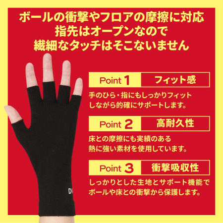現行商品のバレー用パームサポーターの新バリエーションタイプ バレーボールプレー時の指と手のひらの乾燥を予防します。 指先をオーブンにすることで繊細なオーバーパスなどの指先の感覚は損なわない優れものです。 ▼手のひら・指用サポーターの特長 (1) 高耐久性:激しい動きによる摩擦に強く溶けにくさを実現します。 (2) 衝撃吸収性:激しい動きによる手の痛みやケガを保護します。 (3) フィット感:手のひらと指の付け根から第2関節近くまでしっかりと保護します。 (4) 抗菌素材: 抗菌防臭機能糸 ロンフレッシュ使用。 ズレにくいフィット感 サポーター機能を出すことで手のひら全体及び各指部分への的確なサポートにより 自然とボールをつかむような手の形になることが期待できます。 単純な手袋ではなくサポーターであることフィット感 を高めた設計になっています。 高い耐久性 熱にも高い耐性のある素材を選択しているので、床との摩擦やボールとの摩擦でも高い耐久性を実 現します。 合成繊維とは異なる耐久性の高さを考えた材料選択をしています。 安心・安全 国内工場で作成される安心安全な製品です。 ●素材 ポリエステル・綿・レーヨン・ポリウレタン・シルク ●サイズ 【フリー】17〜21cm ●丈(中指~手首) 21cm ●カラー ブラック ●生産国 日本製 ●品番 #325 ●個装 1ケ ●お手入れ 30度を限度に、手洗いをしてください。 汚れた場合は、中性洗剤を溶かしたぬるま湯で手洗いしてください。 ドライクリーニングや乾燥機、脱水機、漂白剤などの使用は避けてください。 ※洗濯後は陰干しし、十分乾燥させてください。 ※当店とメーカーの在庫を合わせた数を表示しておりますので 稀に欠品する場合もございます。 ※配送方法の注意事項 メール便・宅配便について メーカー希望小売価格はメーカーカタログに基づいて掲載しています