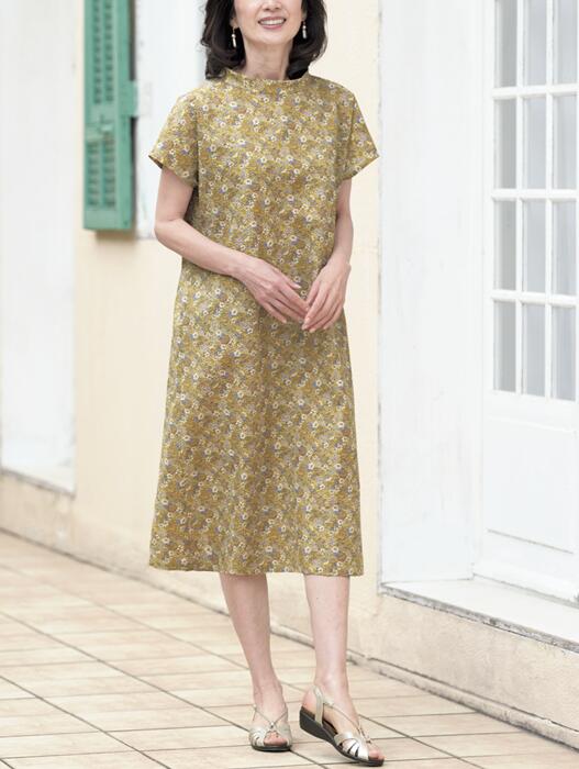 スタンドカラーのチュニック&ワンピ(SB-0035) ・サイズ:S M L ■参考材料用尺(左からS・M・L) チュニック <表布 145cm幅> 1m20cm・1m30cm・1m50cm ワンピース <表布 110cm幅> 2m50cm・2m60cm・2m80cm チュニック・ワンピース共通 <接着芯 112cm幅> 50cm・50cm・55cm <ボタン 直径1.1cm> 1個 首から少し離れたスタンドカラーや、布腕を隠す袖丈など、大人にうれしい絶妙なバランスです。着丈を長くすればワンピースができます。着心地のいいリップル地を使えば、暑い夏でも風を通して涼しく過ごせます。
