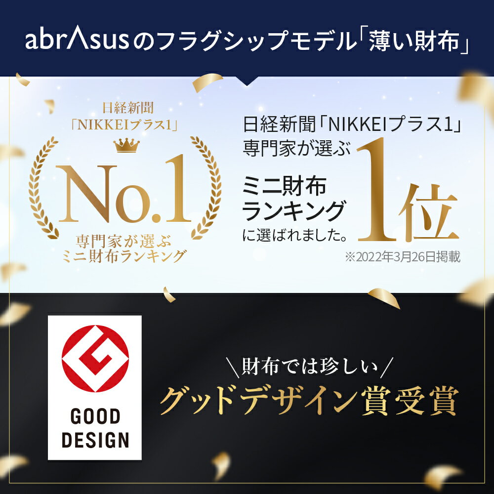 \プレゼントラッピング無料!/\彼氏 夫 プレゼントに人気 グッドデザイン賞 薄い財布 メンズ レディース 二つ折り 本革 レザー ミニ財布 アブラサス abrAsus ギフトにも最適 傷が目立ちにくく、高級感のあるエンボス加工【日本製】【送料無料】【ギフトラッピング無料】