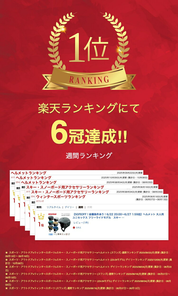 ・メーカー希望小売価格はメーカー商品タグに基づいて掲載しています。 ≫DELIVERY 【配送について】 ※ 詳しくは、こちらをご確認下さい。 ≫COMMENT ◎軽量性と機能性を備えたハイパフォーマンスモデル 【新機能:アンチバイブレーションメッシュ搭載】 ・ヘルメット内側の衝撃吸収材と生地との間に、特殊素材のメッシュを挟み込むことにより、衝撃時の頭部振動を低減。ライダーの頭部を保護します。 ◎サイズ ・M(53cm-57cm) ・L(58cm-61cm) ◎重さ ・M 約430g ・L 約450g ◎機能 ・ライトウェイトシェル / サイズアジャスターダイヤル ・着脱式イヤーパッド ・フィドロックスナップヘルメットバックル ・ゴーグルストッパー付き / エアーインテークホール ・アンチバイブレーションメッシュ ・CE 規格 EN1077B ◎付属品 ・ソフトヘルメットケース、取扱説明書 ◎生産国 ・中国製 ◎対象年齢 ・大人用 SWANS スワンズ HSF-241-P1 FREERIDE HELMET SNOW HELMET Mサイズ Lサイズ 53cm 54cm 55cm 56cm 57cm 58cm 59cm 60cm 61cm 男女兼用 メンズ レディース ユニセックス カラー展開 軽量 AVM アンチバイブレーションメッシュ 振動軽減 衝撃吸収 通気口 ゴーグルストッパー イヤーパッド イヤーパッド着脱 保温 防寒 CE規格 EN1077B 安全規格 衝撃保護 安全設計 スキー スノーボード スノーギア 冬スポーツ 雪山 ゲレンデ ナイター バックカントリー フリーライド 初心者向け 上級者向け 送料無料 新品 プレゼント ギフト 人気 定番 【画像について】 ・商品画像は、実際の商品になるべく近い色あいを再現するよう努めておりますが、光の具合やご覧になっているパソコン、ケータイによっては実際の商品と色味が異なる場合がございます。 販売:株式会社スポーツサンロード 関連商品ヘルメット 大人用 スノーヘルメット ユニセックス リーライドモデル...ヘルメット 大人用 スワンズ SWANS ユニセックス フリーライドモ...ヘルメット 大人用 スワンズ SWANS スノーヘルメット ユニセック...17,820円17,910円19,800円ヘルメット 大人用 ユニセックス フリーライドモデル スキー スノーボ...ヘルメット 大人用 スワンズ SWANS スノーヘルメット 大人...ヘルメット 大人用 SWANS スワンズ MIPS ミップス ユニセッ...13,320円12,420円27,500円ヘルメット 大人用 スワンズ SWANS スノーヘルメット 大人用 軽...ヘルメット スノーヘルメット 大人用 HEAD ヘッド 軽量 アジ...ヘルメット SWANS スワンズ 大人用 スノーヘルメット ユニセック...12,420円17,982円25,000円ジロ ヘルメット GIRO NEO MIPS ネオ ミップス スノーヘ...ヘルメット フリーライド レーススノー スキー【TOTALITY NO...ジロ ヘルメット GIRO SARIO MIPS サリオミップス スノ...18,900円17,010円12,987円