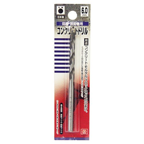 ※この商品はメール便での配送商品です。 代金引換不可・配送日時指定不可商品となります。 ご了承の上ご購入下さい。 対象商品以外との同梱送料やメール便についてご不明点がございましたら、 下記のリンクから内容をご確認ください。↓ ★メール便についてご確認ください。 コンクリート・モルタル・ブロックなどの穴あけ作業。 鋭い刃先で材料を削ると同時に、材料を細かく砕くという作業もしています。 硬度があり、磨耗が少なく、しかも衝撃に強いです。 幅広い用途に対応できる超硬チップの刃先を採用しています。 サイズ:6mm。 丸軸。 使用機種:振動ドリル・回転ドリル。 適応材(回転ドリル使用):ブロックレンガ○・モルタル◎・ALC◎・FRP○・タイル○。 適応材(振動ドリル使用時):無筋コンクリート◎・ブロックレンガ◎・モルタル◎・ALC△・FRP△。