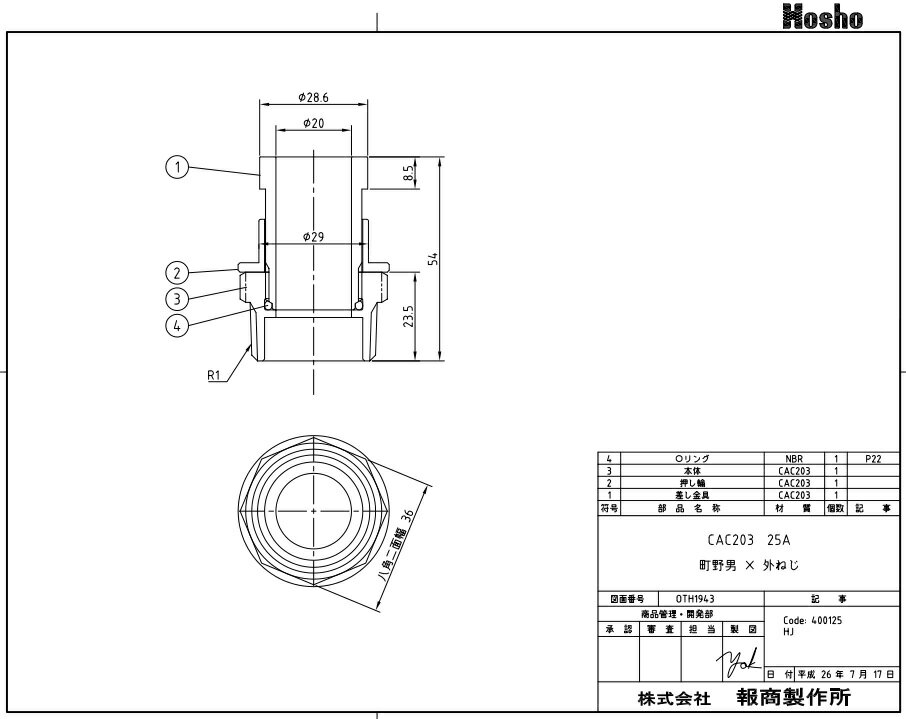 報商製作所 25A 町野男×外ネジ 町野式カップリング継手 オス 散水ホース 消防ホース 消火栓 給水栓