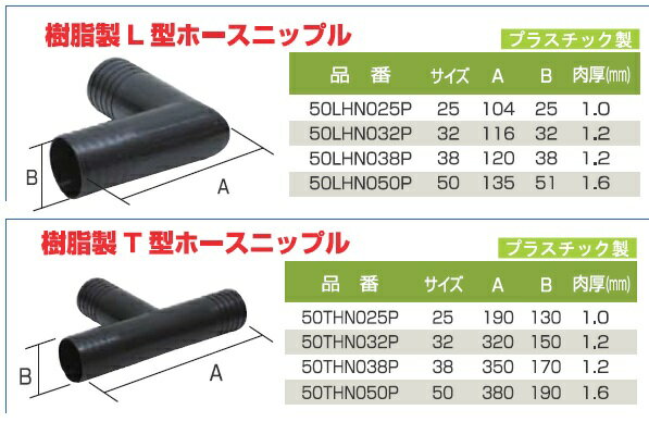 ※沖縄・離島への配送は追加送料を頂きます。 ご注文確認後に、こちらで変更させて頂きます。 送料表を確認しご了承の上ご注文をお願いします。 ・ホースとホースの接続の際に使用します。 ・T字型の両端タケノコホースニップルです。 ホースバンドは付属しておりません。 ・サイズ:40A ・インチ表記:1 1/2 ・肉厚(mm):1.2 ・材質:PP製 ★仕様の違う製品も取り扱っております。 タイプ 型式:カラー L字型 25A 32A 40A 50A T字型 25A 32A 40A 50A ※各型式のページへ移動できます。
