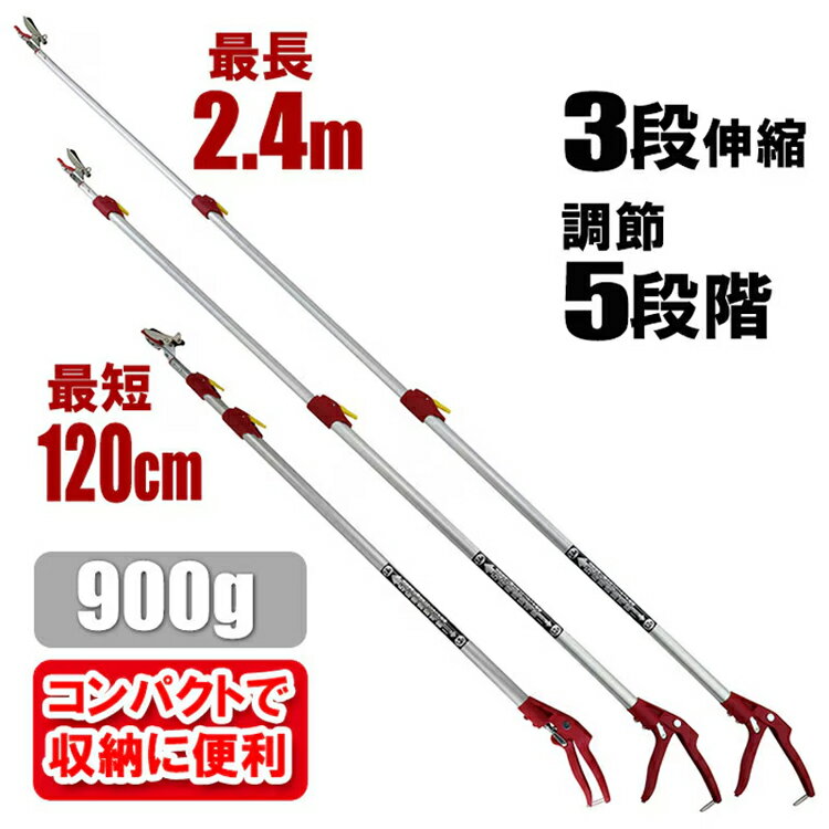 高枝切りバサミ 超軽量 2.4m 3段伸縮 高枝切鋏 高枝切り鋏 高枝切りばさみ キャッチ機能 掴める 剪定ばさみ 剪定バサミ 枝切りはさみ