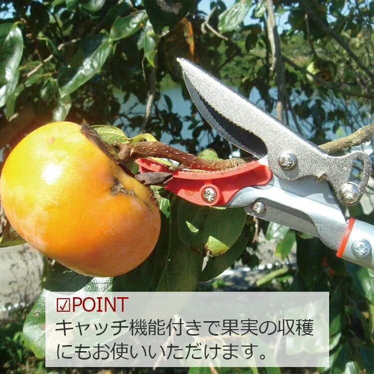 ※沖縄・離島への配送は追加送料を頂きます。 ご注文確認後に、こちらで変更させて頂きます。 送料表を確認しご了承の上ご注文をお願いします。 ・庭木の剪定作業、果樹の収穫作業に。 ・最短1200mmとコンパクトなので、傘立てや下駄箱に収納できます。 ・軽量タイプの3段伸縮高枝切鋏です。 ・スプリングキャッチ機能で「切る」「つかむ」が、部品の付け外し無しで行えます。 ・アンビルタイプ刃採用で15mmまでの生木を強力に切断可能です。 ・生木切断目安:15mm ・タイプ:3段伸縮 ・アンビル刃 ・最短時:1200mm ・最長時:2400mm ・重量:960g ・刃部:SK5