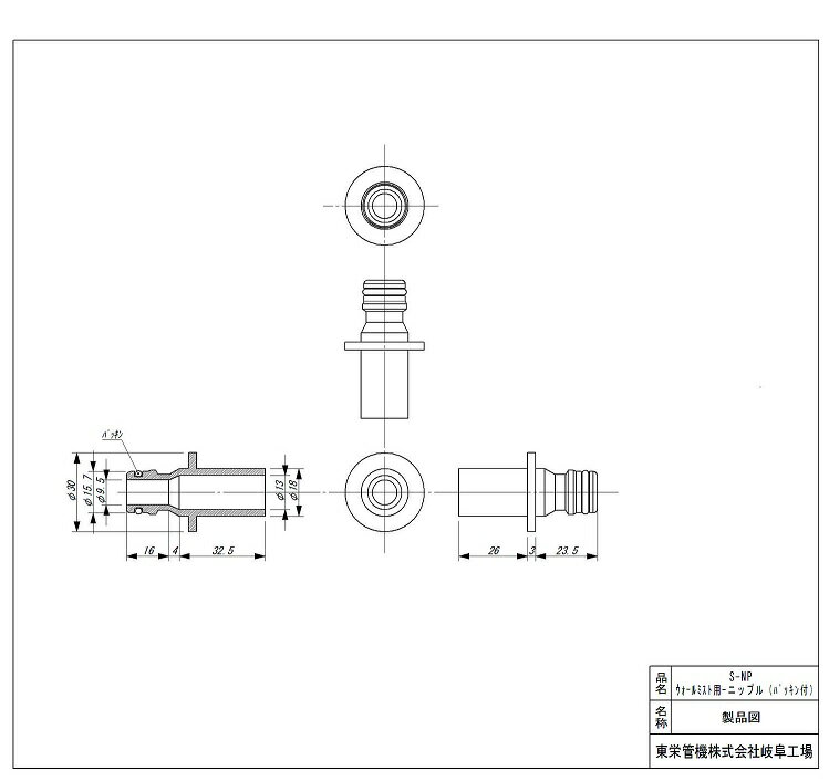 TSK ウォールミスト用ニップル 13A S-NP 塩ビ管用 塩ビパイプ用 ホースジョイント ワンタッチカプラー用 散水ホース用