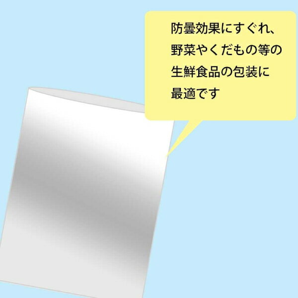 ・野菜の出荷袋。 ・おすすめ農産物:大葉 ・曇りにくく、水滴がつきにくいので、農産物・青果物の包装に適しています。 ・生鮮野菜、果物を扱う青果店やスーパーなどの販売店、農家、市場におすすめです。 ・やや厚みがあるタイプで、通気性をよくするために空気穴があります。 ・食品衛生法規格基準適合商品です。 ・タイプ:穴あり ・入数:1000枚(100枚入り×10袋) ・サイズ:厚さ0.025×幅180×高さ600mm ・材質:OPP