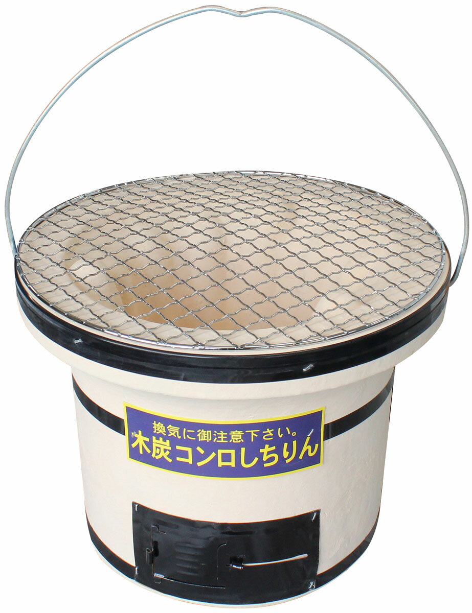 焼き網つき 本格珪藻土 丸型七輪 OF7RO 9号 丸27cm 丸アミ付属 木炭コンロ 秋刀魚 炭火焼 焼き鳥 焼肉 おもち お祭り イベント