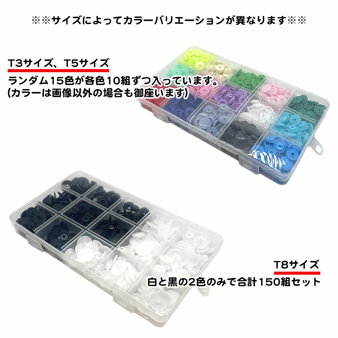 ハンディプレス付き 15色150個 プラスナップボタン ハンドプライヤー T3 T5 T8 10mm 12mm 15mm 手芸 ボタン ケース カシメ スナップボタン 打ち具 プラスチック ハンドメイド 工具 簡単 送料無料