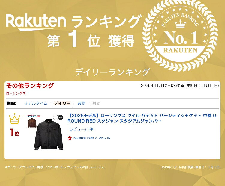 街でも着れるRawlings「GROUND RED」シリーズバーシティジャケット! ローリングスのヴァーシティジャケット、2025年秋冬モデル! 「街でも着れるローリングス」がコンセプトの「GROUND RED」シリーズ。 プロ野球選手の意見を取り入れた、タウンユースやオフシーズンで着用できるスタイリッシュなアパレルコレクションです。 適度な光沢・ハリのあるナイロンのツイル生地で、内側には中綿を仕込んだ保温性に優れたジャケット。 試合前・試合後の移動着として着るのはもちろん、カジュアルに普段遣いするのもオススメです。 カラー ブラック、ブラウン サイズ L,O,XO(JASPO規格) メーカー希望小売価格はメーカー商品タグに基づいて掲載しています。関連商品ユニックス メモリアルグラブ WHXRD 9インチ(BX7721) u...ナイキ サンディエゴ・パドレス フルジップ ジャケット 長袖 フーディ...ミズノプロ 野球 ユニフォームパンツ ストレートフィット 超伸 12J...2,420円23,263円6,160円【2025モデル】オンヨネ ウェア ウィンドブレーカー ジャケット ロ...【2025モデル】ミズノプロ 限定 野球 ウェア 上下セット テックシ...ゼット プロステイタス 限定 野球 ウェア ウィンドジャケット ロング...18,709円21,120円18,016円ユニックス 水たまり排水ネット(BX7633) unix18ss...【2025モデル】ローリングス スウェット プルオーバーフーディー パ...ヨネックス YONEX メンズ ニットハーフパンツ テニスウェア バド...1,430円8,547円11,088円【スタンドインカスタム】ローリングス 野球 長袖 フリースパーカー ジ...ローリングス パッチロゴ スウェットパーカー GROUND RED 長...ミズノプロ 野球 テックスウェット ジャケット ロングパンツ 上下セッ...11,000円4,107円15,950円