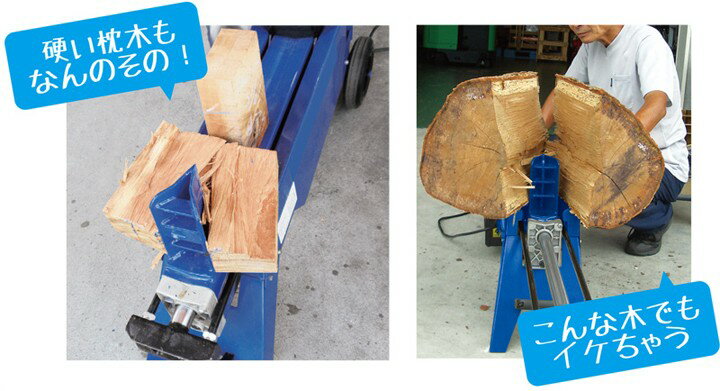 ワンハンドで操作でき、女性でもラクラク薪割り可能! 電動油圧式薪割機 5.5t 単相100V仕様  KT-155PRO-DX ※メーカー直送代引不可商品 ※こちらの商品は重量物につき車上渡しとなります。 配達の際、運送ドライバーは1名で参りますので、荷下ろしスタッフまたは荷下ろし機のご用意をお願いします。 【商品の特徴】 ◎自然の恵みを有効活用しませんか? 廃材、風倒木、間伐材をエネルギーに! ◎薪割りの苦労はすべて解決。 ◎ご家庭に1台の経済的低価格! ◎操作が簡単で能率性抜群!女性、お年寄りの方にも楽々作業! ◎小型で5.5tもの破砕力で、ワンハンド操作で扱い易くどなたでも薪割り作業を楽しんでいただけます。 【仕 様】 電源:単相100V 最長処理能力:520m/m 操作:ワンハンド( レバーを下に押すと押し板が前進し、レバーを離すと自動で元に戻ります。) 破砕力:5.5t 動力:100V単相 1500W モーター定格時間:30分 重量:48kg 寸法:960(長さ)×280(幅)×470(高さ) mm 本体色:青色 メーカー保証:本体 メーカー保証 6ヶ月【仕 様】 電源 単相100V 最長処理能力 520m/m 操作 ワンハンド ( レバーを下に押すと押し板が前進し、レバーを離すと 自動で元に戻ります。) 破砕力 5.5t 動力 100V単相 1500W モーター定格時間 30分 重量 48kg 寸法 960(長さ)×280(幅)×470(高さ) mm 本体色 青色 メーカー保証 本体 メーカー保証 6ヶ月
