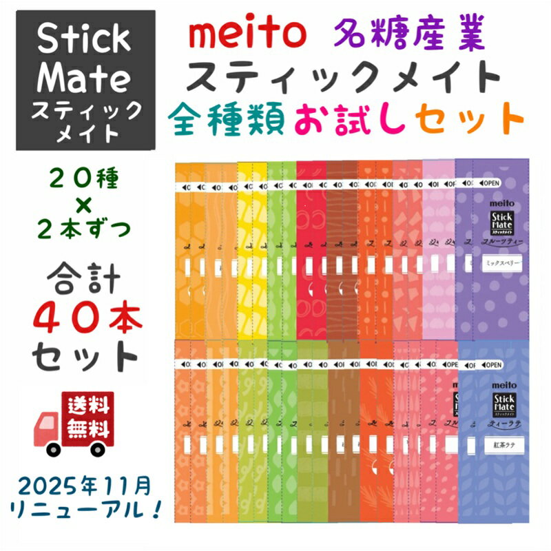 meito 名糖産業 スティックメイト アソート ココア ティー 2025 全種類 お試し 20種×2本 40本 セット 送料無料