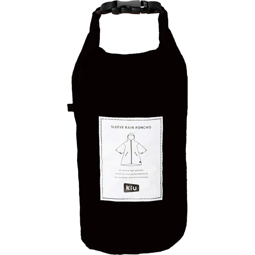 KiU 大雨対応 袖あり ポンチョ 自転車 はっ水 防水 収納袋付き メンズ レディース レインポンチョ プリント ブラック K77-182
