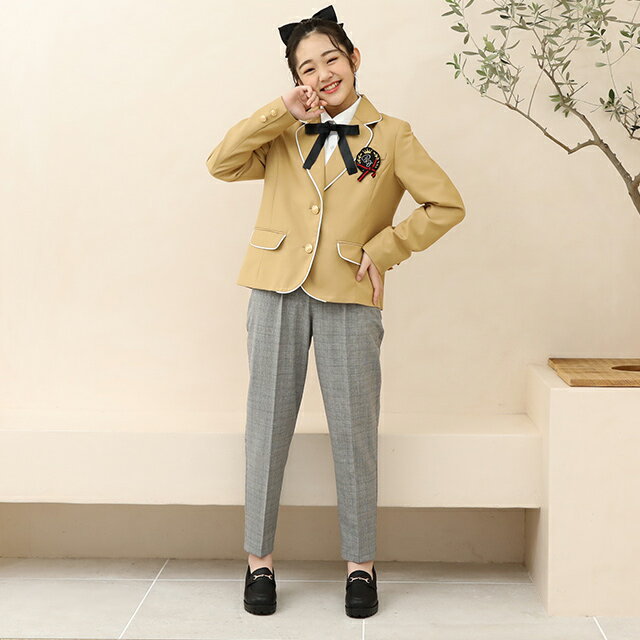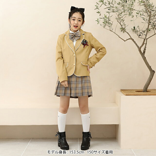ピンクハントから卒業式などにピッタリなフォーマルジャケットが登場☆ 配色のパイピングやエンブレムブローチがかわいい♪ セットになるスカートとリボンタイを合わせて自分好みのコーデが組めちゃう◎ キッズ ジュニア ガールズ 女の子 小学生 中学生 ★素材・仕様★ 本体:ポリエステル75%,レーヨン25%裏地:ポリエステル100%パイピング:ポリエステル100%原産国:中国 取り外し可エンブレムブローチ胸ポケットx1肩パット前開きボタン袖部分フェイクボタンx4腰ポケットx2 ※ベージュカラーは生産時期により、色合いが多少異なります。 ※写真のプリント位置と多少の誤差が生じる場合があります。 ★サイズ(cm)★ 120cm 着丈:41 胸回り:72 肩幅:30 裄丈:57 130cm 着丈:44 胸回り:76 肩幅:32 裄丈:62 140cm 着丈:48 胸回り:80 肩幅:34 裄丈:68 150cm 着丈:52 胸回り:84 肩幅:36 裄丈:73 160cm 着丈:55 胸回り:90 肩幅:38 裄丈:78 ※加工の関係上、1〜2cmの誤差が生じる場合がございます。 メーカー希望小売価格はメーカー商品タグに基づいて掲載しています。 ◆PINKHUNTとは◆ いまどきな女の子たちの「今」の気分に寄り添う等身大のファッションアイテムを提案するGirlsブランド★ シンプルカジュアルからスポーティ、ガーリーなど様々なテイストのアイテムを展開します。 2024年SSのテーマはガーリースタイルのテーマが「大人ガーリー・フェミニン・ガーリーカジュアル」 カジュアルスタイルのテーマが「韓国ファッション・Y2K・Y3K・令和ギャル」 ガーリースタイルでは大人のトレンドを取り入れつつ、オーガンジーの透け感やレースやリボンなどを使用し、フェミニンな アイテムを展開。 ガーリーなトップスにデニムやカーゴパンツなどのカジュアルアイテムを合わせたガーリーとカジュアルのMIX コーデも提案。 カジュアルスタイルではショート丈トップスや、デニムアイテム、メッシュ素材などのアイテムを展開。 配色やデザインなど韓国アイドルの衣装ような要素を取り入れたアイテムを提案します。 韓国トレンドファッションや大人っぽスタイル、ナチュラル、シンプル派など・・・♪ おしゃれが大好きな女の子全員におすすめのお洋服が満載のガールズブランドです★ ■おすすめシーン 学校や通学、お散歩などの日常のシーンから学校行事の遠足、ピクニック、修学旅行など動きやすさ重視の時や♪ 休日の遊びやお出かけ、ショッピング(お買い物)、バーベキュー(BBQ)などのイベントやレジャーでみんなと差をつけたいときも♪ 旅行や春休み、夏休み、連休、撮影会などの特別な日にも♪ 毎日ピンクハントコーデを楽しんじゃお★ ■おすすめ着用年齢 小学生の低学年〜中学年、のキッズサイズのJS層から 小学校高学年〜中学生のジュニアサイズのJC層まで幅広く展開★ サイズ展開は120cm、130cm、140cm、150cm、160cmです♪ サイズ:120cm/130cm/140cm/150cm/160cm カラー:ブラック/グレー/ベージュブラック front back グレー front back ベージュ front back 詳細 ▼その他のPINKHUNTアイテムはこちら▼