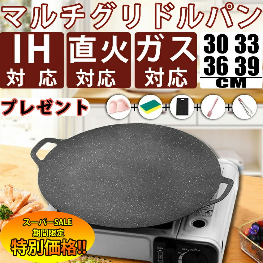 マルチグリドル パン 【 キャンプ最適設計】 マルチグリル パン 33cm 4mm厚アルミ合金 取っ手 バッグ付き キャンプグリルパン 鉄板 アウトドア ガス・電気コンロ使用可 (me in nature) ミーインネイチャー