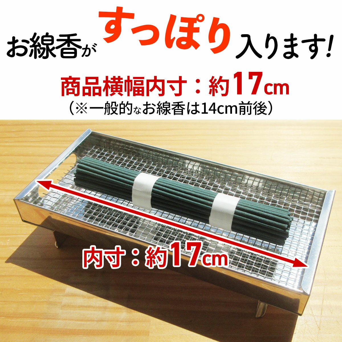 【商品詳細】 お墓用の線香皿です。 錆びにくく高耐久なステンレス製。 安心の日本製。 丸ごと水洗いでメンテも簡単。 サイズ ※必ず画像でご確認ください。 横幅:180mm 奥行:85mm 高さ:35mm一般的なお線香の長さは14cm前後。 この線香皿(大)は横幅内寸17cmなのでお線香が余裕ですっぽり入ります。 \風で飛ばない/ \風で飛ばない/ ↓現在のページ↓