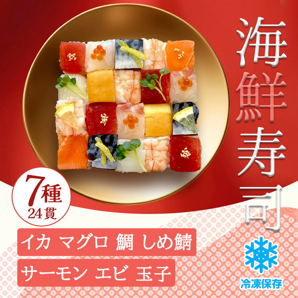 冷凍 押し寿司 詰め合わせ クリスマス 2025 7種 24貫 寿司 (まぐろ 鯛 サーモン 海老 イカ しめ鯖 玉子) 【急速冷凍でまるで作り立てのような味わい!】押し鮨 鮨 こだわりシャリ お取り寄せ グルメ かわいい ギフト パーティー お祝い母の日 父の日 国産米使用 冷凍食品