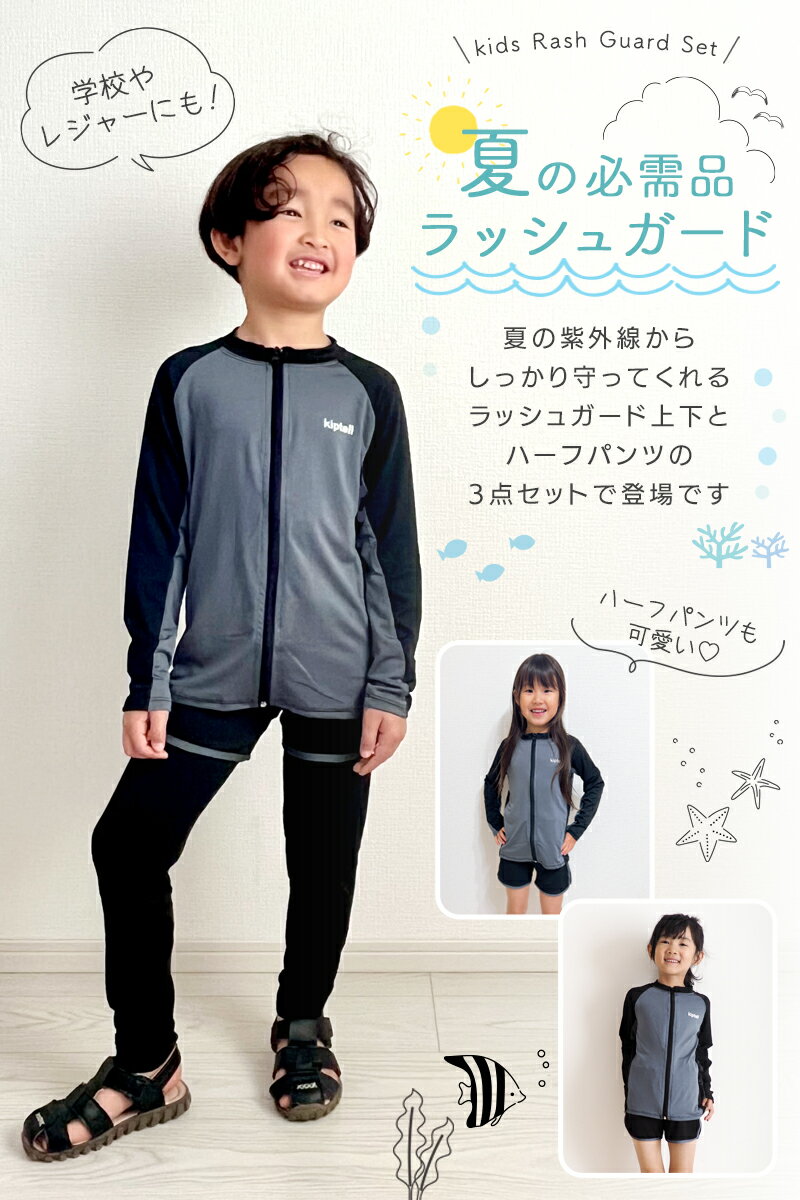 メーカー希望小売価格はメーカーカタログに基づいて掲載しています [商品説明] キッズ 水着 ラッシュガード 男の子 女の子 兼用 男女兼用 子供 スイムウェア UV対策 3点セット 120cm 130cm 140cm 150cm 夏 海 プール 水遊び 柄 長袖 スイム ウェア セパレート おしゃれ かわいい かっこいい UV 保育園 紫外線対策 日焼け防止 プール 上下 フードなし UVカット 上 下 お揃い 大きめ かぶり セット セットアップ 水陸両用 スクール 撥水 水着セット ジュニア 上下セット 全身 ペア ハーフパンツ ロングパンツ 子供用 無地 ツートン バイカラー モノトーン ブラック グレー スイミングスクール 子供水着 こども ガールズ 海水浴 パンツ 上下セットアップ ショートパンツ 膝上丈 動きやすい フィットネス ダイビング 送料無料商品紹介 chamo kids Kids Rash Guard ラッシュガード3点セット/size120〜150cm 夏の必需品ラッシュガード 夏の紫外線からしっかり守ってくれる ラッシュガード上下とハーフパンツの3点セットの登場です POINT1 お子様の日焼け対策に 夏の強い日差しも!長袖ラッシュガードとロングパンツで肌をしっかりガード POINT2 3点セット ラッシュガード・ロングパンツ・ハーフパンツの3点セット 着回しコーディネートでおしゃれ度ワンラックUP! POINT3 セパレートタイプ セパレートタイプで脱ぎ着しやすい 泳ぎやすいフードなしタイプでママも安心 POINT4 伸縮性のあるストレッチ素材 4方向にしっかり伸びるので、お子様でも脱ぎ着しやすい生地 POINT5 便利なハーフパンツ ウエスト部分のひもはお子様の体形に合わせて調整が可能です ※紐付きはハーフパンツのみです。 ハーフパンツを上に重ねれば、透けずに安心です ※裏地はついておりません。 スペック 120cm 130cm 140cm 150cm ※2〜3センチほど差異がある場合がございます 素材:ポリエステル85% ポリウレタン15% 生産国 中国製 made in China(メイド イン チャイナ) designed in japan(ジャパン) ※こちらの商品は日本のデザインチームで企画された商品です。