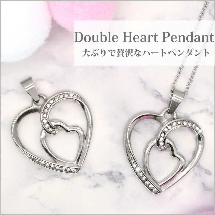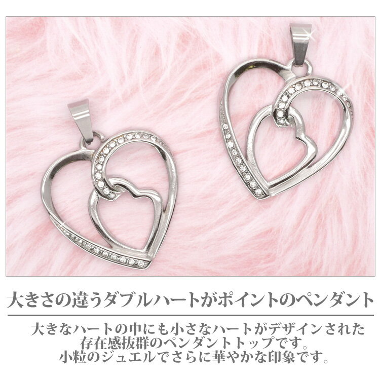 【店内3点以上で20%OFFクーポン】金属アレルギー対応 ステンレスペンダント ダブルハートジュエルペンダントトップ ステンレスネックレス 安心 316L ニッケルフリー