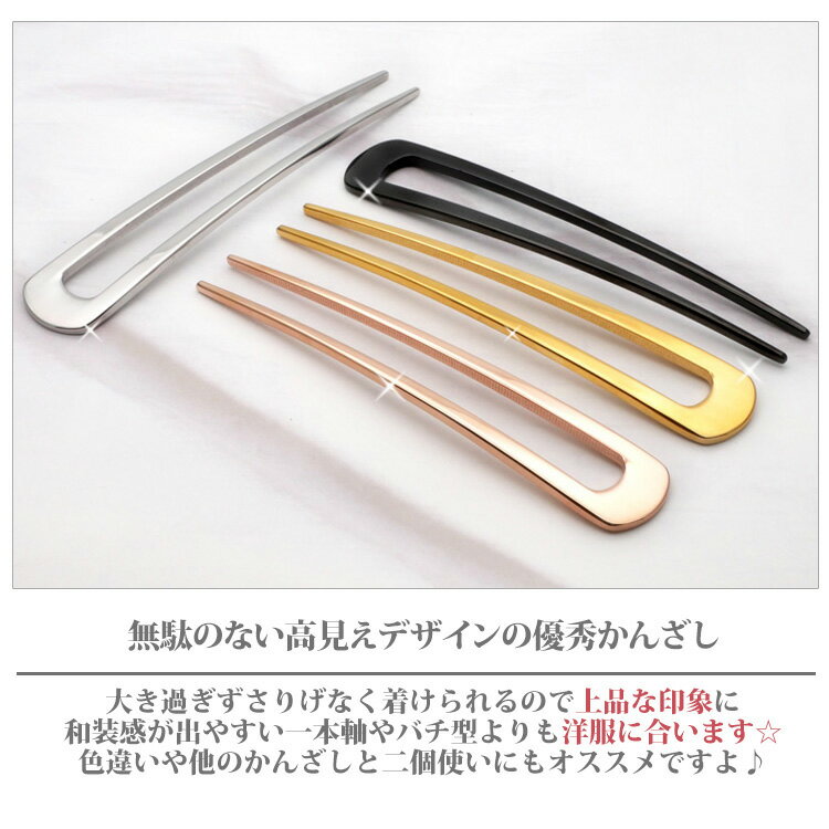 金属アレルギー対応 サージカルステンレス かんざし アレンジしやすいU字型 へアスティック ヘアアクセサリー シンプルなヘアアクセ 浴衣や着物などの和装 夜会巻きやお団子などのまとめ髪 上品 30日返品保障