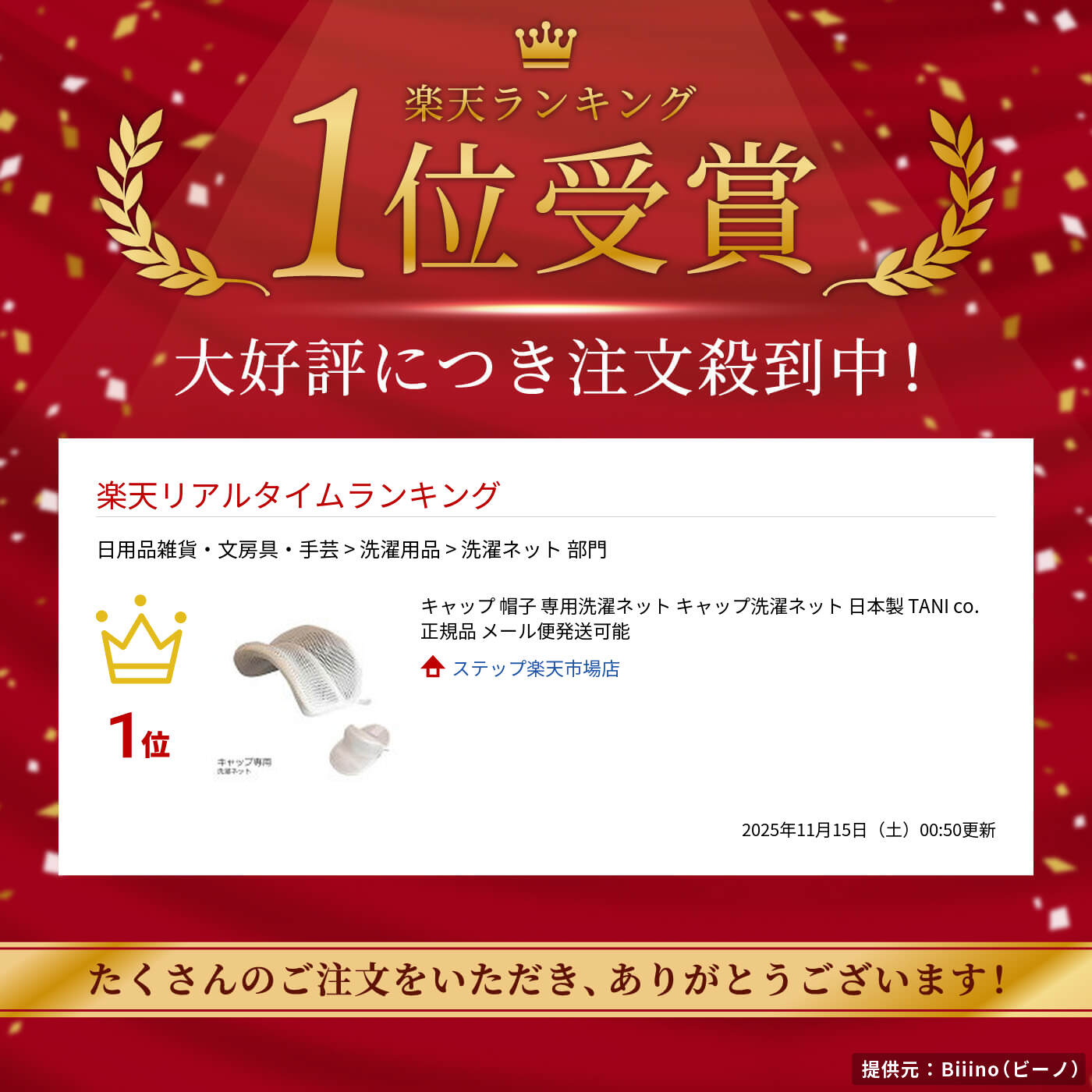 キャップ・帽子の専用洗濯ネットです。 キャップをよくお使いになる家庭にあると、とっても便利。 キャップは、よく汚れるのに、手洗いしないと型崩れするし・・・面倒。 野球・ゴルフ・テニスなど、特に良く汗をかかれる季節には重宝します。 洗濯機に放り込むだけ。 ★流行りの真っすぐな“つば”にも対応しています。 変形することなく洗え、簡単にいつも清潔なキャップをかぶることが出来ます。 特に少年野球の子どもさんがいるところでは大活躍 ユニホームを洗うついでに洗濯機に「ぽいっ」いつでも清潔に保てます。 汚れのひどい場合は汚れ部分に液体洗剤を少量塗って洗濯機に入れれば、OK!★ドラム式にも対応 忘年会の景品や、殊勲選手へのプレゼントなど喜んで頂ける優れものです。 NHKニュースおはよう日本 まちかど情報室「夏の洗濯 助けます」で紹介されました。 キャップ洗濯ネット 日本製 TANI co. 正規品 ★2個までメール便発送可能キャップ 帽子 専用洗濯ネット キャップ洗濯ネット 日本製 TANI co. 正規品 メール便発送可能キャップをよくお使いになる家庭にあると、とっても便利。★最近流行りの真っすぐな“つば”にも対応しています。お手持ちのキャップの形状に合わせられます。キャップは、よく汚れるのに、手洗いしないと型崩れするし・・・面倒。野球・ゴルフ・テニスなど、特に良く汗をかかれる季節には重宝します。洗濯機に放り込むだけ。★ドラム式にも対応変形することなく洗え、簡単にいつも清潔なキャップをかぶることが出来ます。特に少年野球の子どもさんがいるところでは大活躍ユニホームを洗うついでに洗濯機に「ぽいっ」いつでも清潔に保てます。汚れのひどい場合は汚れ部分に液体洗剤を少量塗って洗濯機に入れれば、OK!忘年会の景品や、殊勲選手へのプレゼントなど喜んで頂ける優れものです。※NHKニュースおはよう日本 まちかど情報室「夏の洗濯 助けます」で紹介されました。キャップ 帽子 専用洗濯ネット※日本製 TANI co. 正規品 全ての工程を日本で制作しています。★2個までメール便発送可能 (3個以上は普通便での発送になります)ネット本体はたまに天日干ししてください。お風呂の残り湯での洗濯は、ネットが汚れやすい傾向にありますので、時々水洗いして天日に干して下さい。 関連商品はこちらシューズ・スニーカー専用洗濯ネットネクタイ&スカーフ用 洗濯ネット メー...ブラジャー専用洗濯ネット マシマロ 日本製ブラジャー洗濯ネット マシマロ・大きい...ブラジャー洗濯ネット マシマロ・2枚収...マシマロ ブラ洗濯ネット(★普通サイズ...マシマロ ブラ洗濯ネット(★Lサイズの外...マシマロ ブラ洗濯ネット(★2枚重ね用の...カップ付きキャミソール用・洗濯ネット...