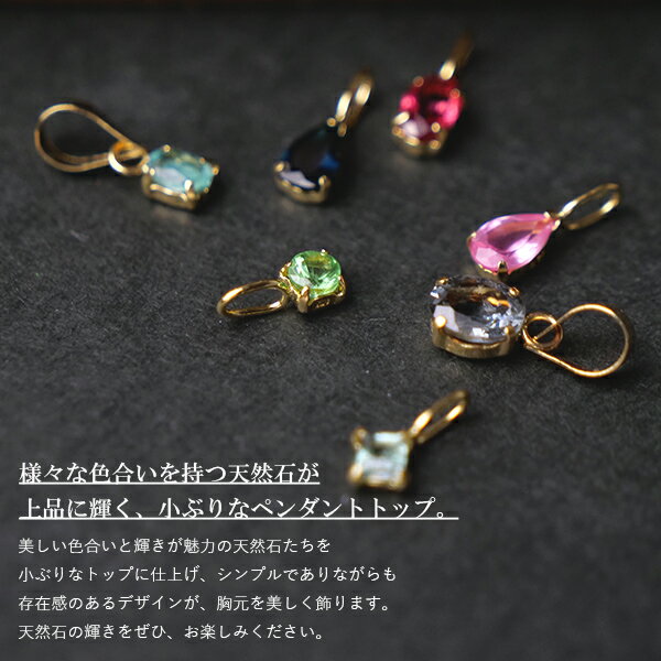 K18の高級感と天然石の輝きが魅力のペンダントトップ。 シンプルでありながらも、存在感のあるデザインで、天然石ならではの深みのある輝きと、ゴールドの上品な光沢が、胸元を華やかに彩ります。 また、お手持ちのチェーンに合わせるだけで洗練されたペンダントに変わり、気分やファッションに合わせたアレンジも自在で、普段使いとしてもお楽しみいただけます。 天然石の美しさと18金の輝きを兼ね備えた一品を、ぜひお手元でご堪能ください。 【商品仕様】 【個数】1個 【素材】K18イエローゴールド (※グレースピネル・グランディディエライト3爪、4爪はK18) 【カラー】ゴールド (チェーンは付属しません) 【サイズ】バチカン内径 縦×横:約4×2mm (※グレースピネル・グランディディエライト3爪、4爪は内径 約4.3×2.3mm) 【天然石の種類】 ・レッドスピネル(約3×5mm 0.25ct) ・ローズスピネル(約3×5mm 0.2ct) ・ピンクスピネル(約3×4mm 0.15ct) ・スピネル(紫)(約3mm 0.1ct) ・スピネル(青)(約3×4mm 0.15ct) ・グレースピネル(約4×5mm 0.35ct) ・タンザニアコーネルピン(約2.5mm 0.1ct) ・ミントガーネット(約2.8mm 0.1ct) ・グランディディエライト3爪(約3.5×4.5mm) ・グランディディエライト4爪(約3.5×4.5mm) ・インディゴライト(約3×5mm 0.15ct) ・ブラックダイヤモンド(約4mm 0.2ct) ※在庫からランダム発送となります。 ※製造時に発生した小きず等が見られる場合があります。 ※すべておよその数値です。個体差、ロット差があります。 ※必ずしもすべての方にアレルギーが起きないわけではありません。異常を感じた場合はご使用をおやめください。 ◆大切なご案内~必ずお読みください。~◆ ・海外品、手作り製品のためサイズに多少の個体差がございます。 ・入荷ロットにより、同一カラーの商品であっても色味に若干の誤差が生じる場合がございます。 ・入荷時期により、多少価格が前後する場合がございます。 ・掲載写真はできる限り実際のお品の色に近づけるよう心がけておりますが、パソコンやモニタによって、若干色合いが異なることがございます。