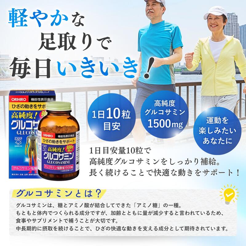 オリヒロ 高純度 グルコサミン 塩酸塩 1500mg 機能性表示食品 粒徳用 900粒 90日分 関節ケア サプリメント 曲げ伸ばし 違和感軽減 健康維持に