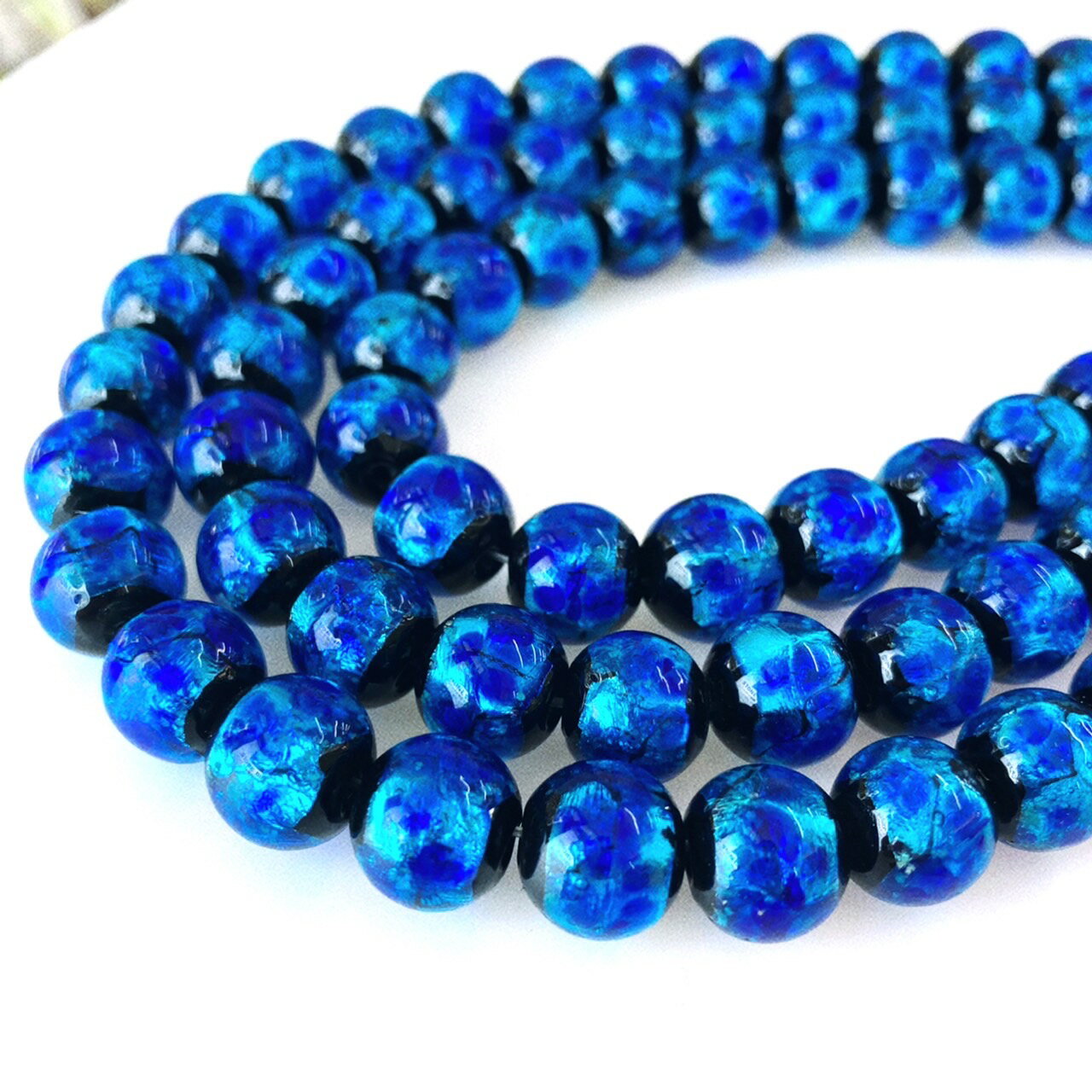 ホタルガラス 8mm 連売り 濃いブルー 50粒 とんぼガラス とんぼ玉 蓄光 夜光タイプ 送料無料
