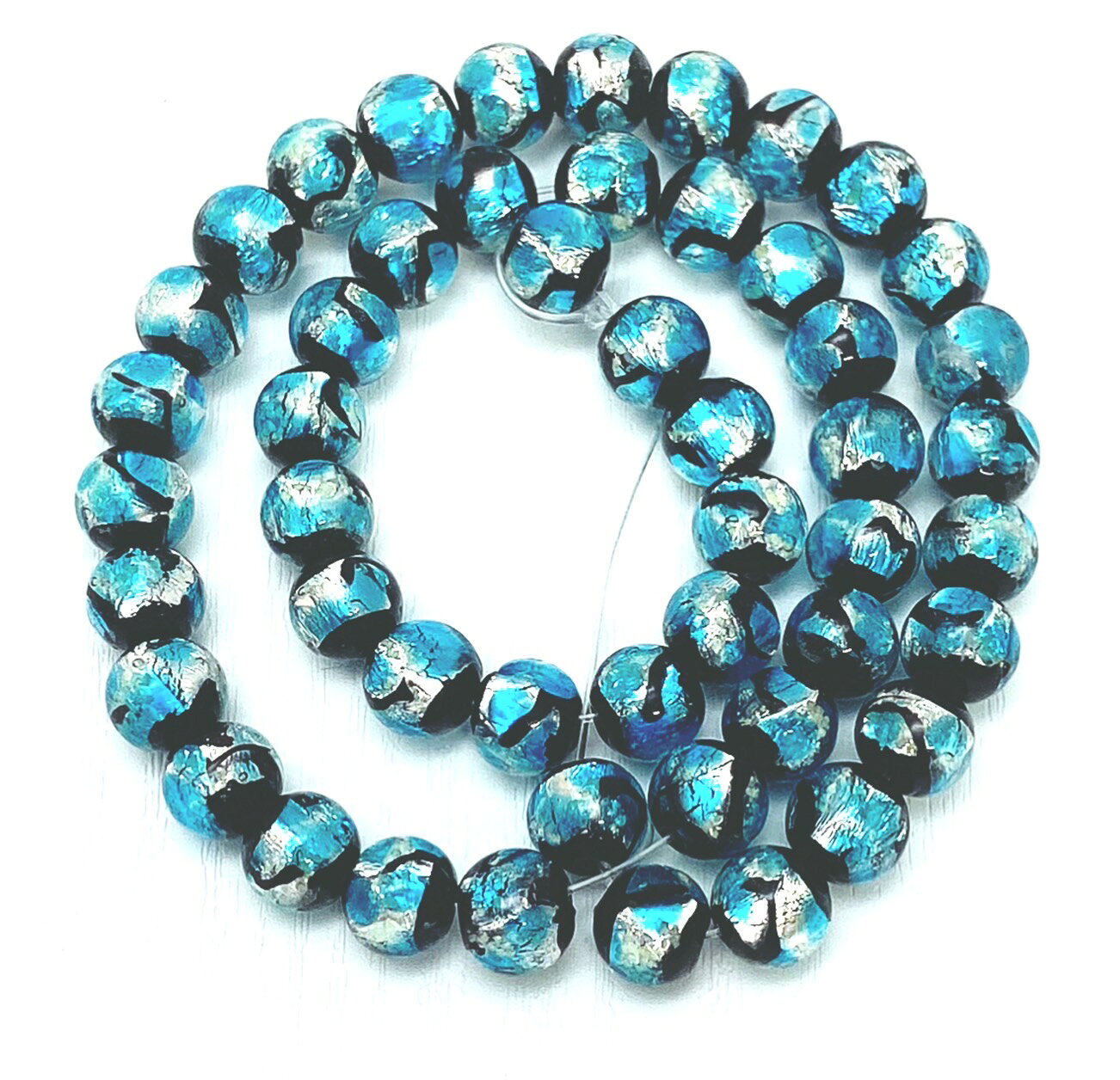 ホタルガラス 12mm 連売り 33粒 シーブルー とんぼ玉 蓄光 夜光タイプ 送料無料