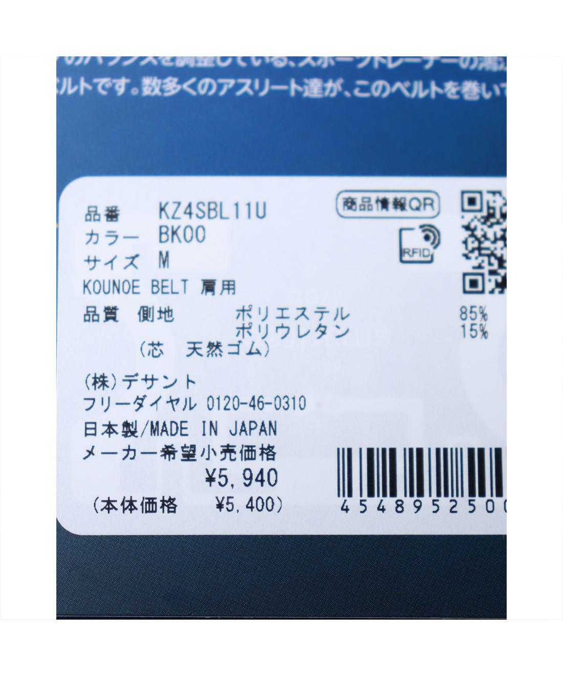 【11/22-11/25 P10倍・10%OFFクーポン】【公式】コウノエ デサント ベルト肩用 ユニセックス メンズ レディース 肩のバランス 上半身のバランス 小物 アクセサリー トレーニング スポーツ ブランド KZ4SBL11U 2025年秋冬モデル
