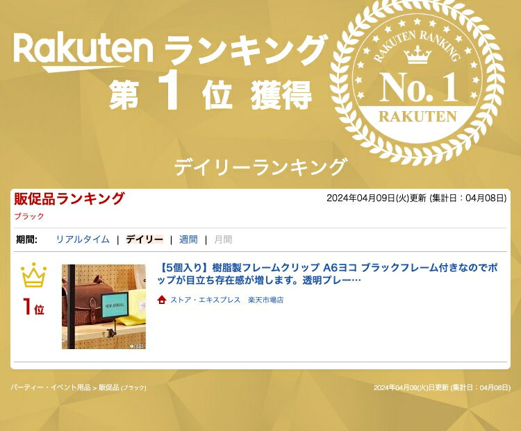 ■■商品特徴■■A6ヨコフレーム付きでポップが目立ち、存在感が増します。透明プレート付きで、コピー用紙でも光沢が出てきれいに表示できます。サイズ幅15.6×高さ25.5cm画面寸法:14×9.6cm素材本体:樹脂 プレート:PET樹脂0.4mm厚セット内容本体×1 プレート×2特記事項丸バー直径17〜25mm、角バー14×32mmに対応しています。 1.5mm厚までのポップをご使用いただけます。(ただし0.5mm厚以上のポップをご使用の場合は透明プレートを抜いてご調節ください。) 両面仕様関連商品【20個入り】クリップポップ立て H9.4cmPOPやプライスカード立...スマートアクリルフレーム B6 1個ヨコ置きでもお使いいただけます。面...【10個入り】クリップポップ立て H16cmPOPやプライスカード立て...2,500円2,600円2,300円【5個入り】樹脂製フレームクリップ A6ヨコ ホワイトフレーム付きなの...【20個入り】カードクリップ ブラック H10.5cm角度調節で見やす...両面用サインホルダー A3タテ【ここでしか買えない!ストア・エキスプレ...2,500円3,200円2,900円【20個入り】クリップポップ立て H7.2cmPOPやプライスカード立...シンプルアクリルフレーム 正方形 10cm角 1個シンプルながら高級感...アクリルフレーム クリア 13×17cm 1個高級感のある斜めカットの...2,400円2,100円2,000円スマートアクリルフレーム A6 1個ヨコ置きでもお使いいただけます。面...アクリルフレーム クリア 18×24cm 1枚高級感のある斜めカットの...【5個入り】アクリルポップカード立て 大高級感のあるアクリルポップカー...2,600円2,400円2,100円