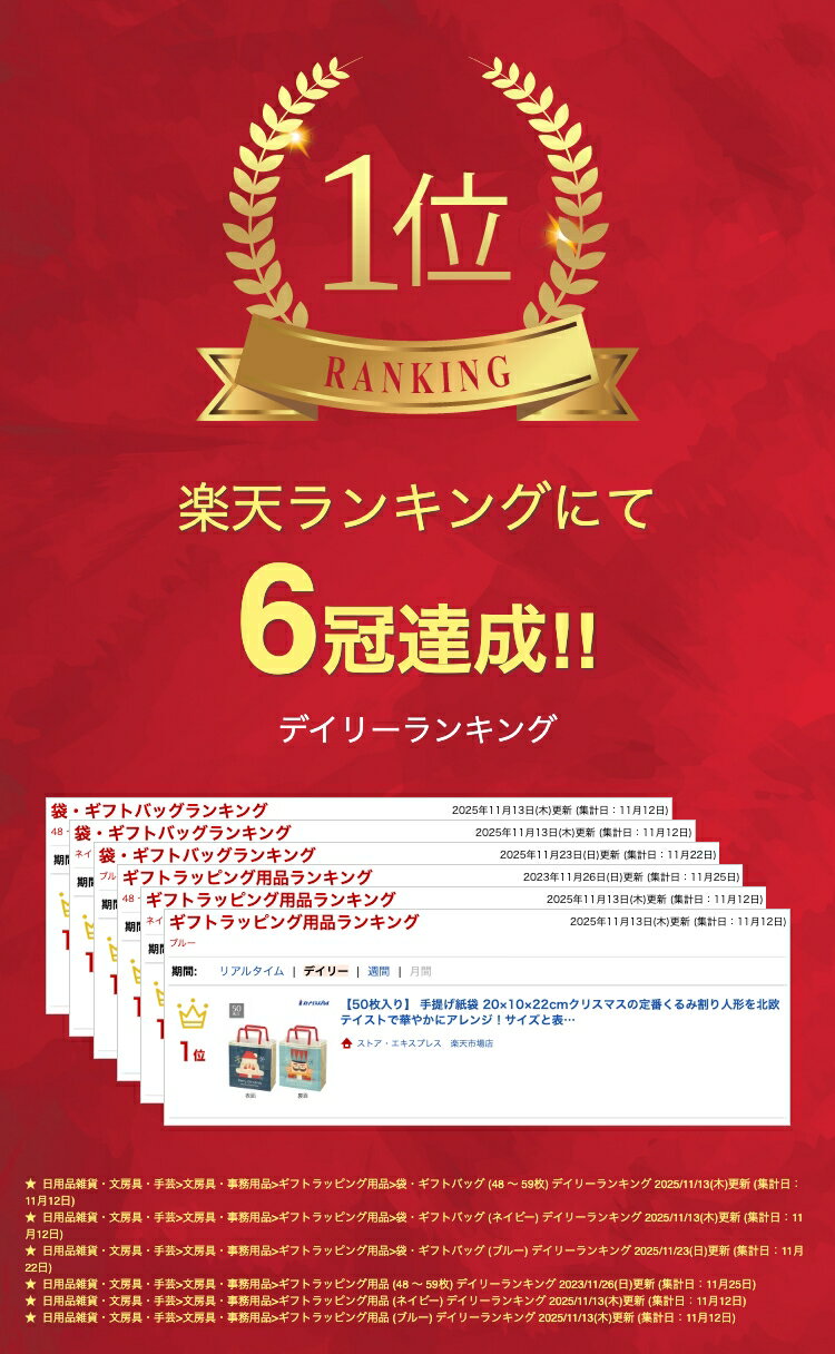 【50枚入り】 手提げ紙袋 20×10×22cmクリスマスの定番くるみ割り人形を北欧テイストで華やかにアレンジ!サイズと表裏でデザインが異なるので店頭ディスプレイとしてもおすすめです。クリスマス ギフト バッグ ラッピング 袋 おしゃれ 手提げ