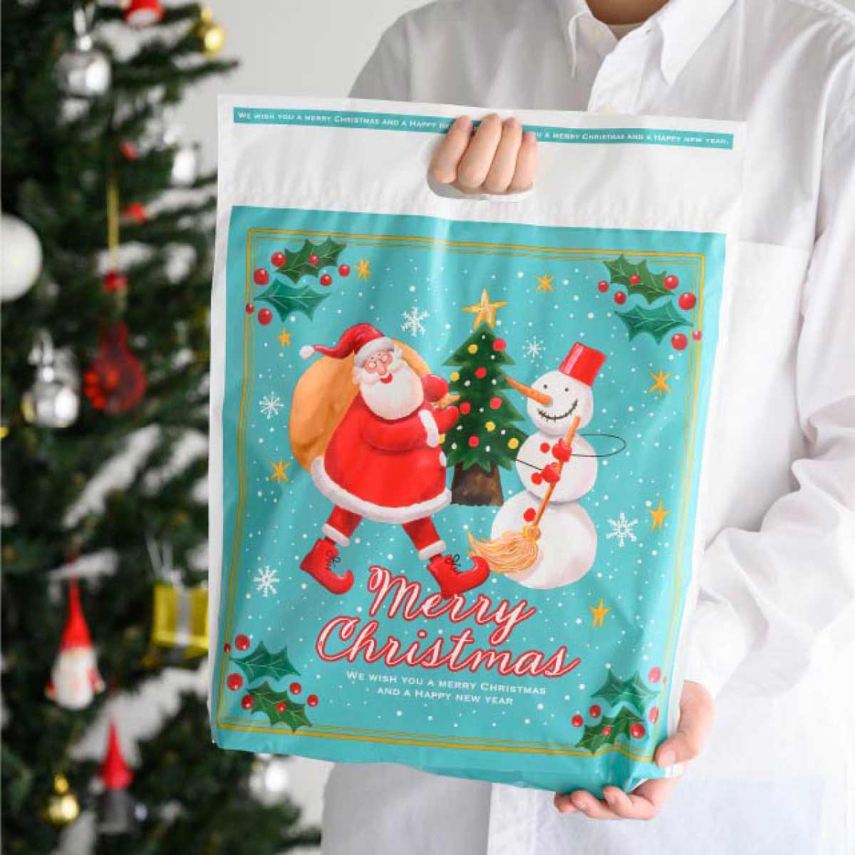 【10%OFFクーポン有り!11月20日限り】【50枚入り】ゆかいなクリスマス ポリバッグ 36×44×底マチ6cm送料無料 ラッピング 袋 ギフト かわいい サンタ おしゃれ ビニール