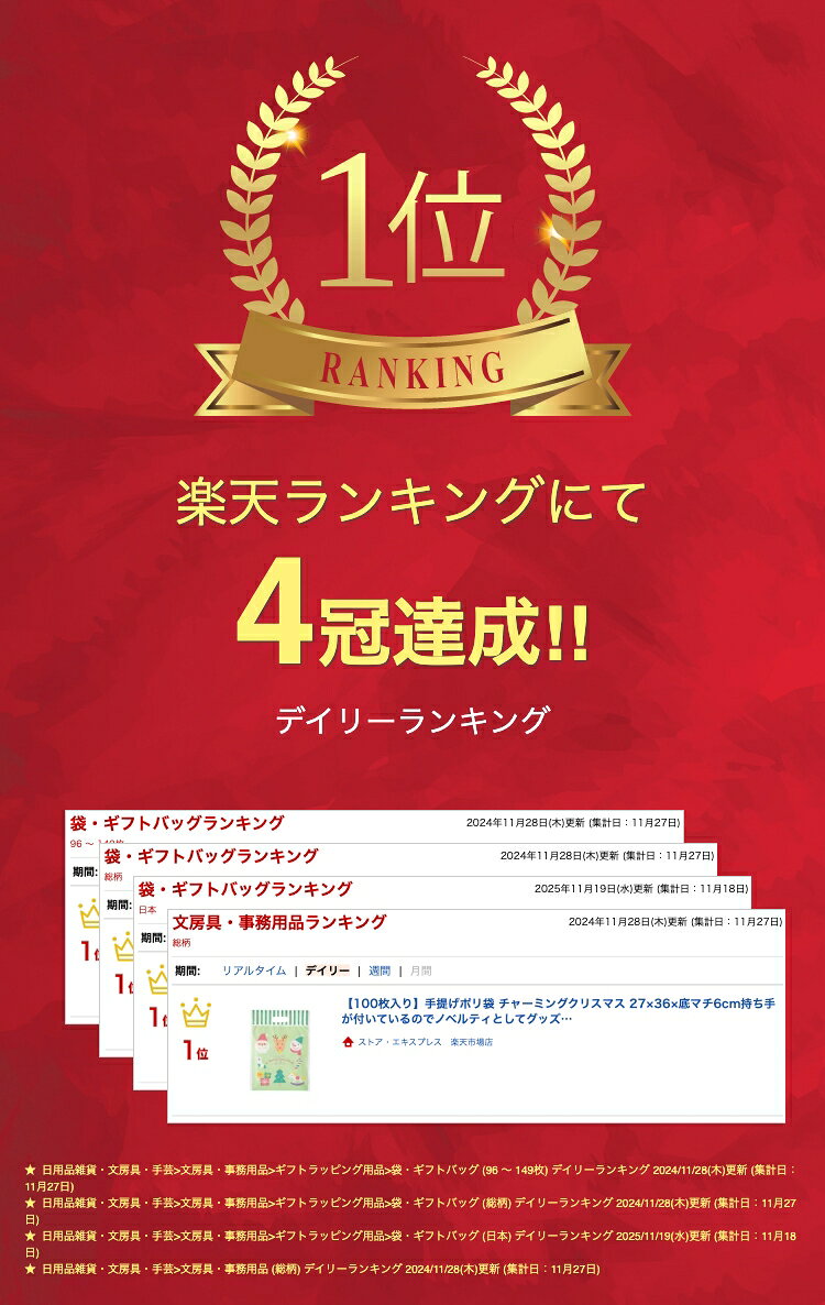 ■■商品特徴■■クリスマスプレゼントのラッピングに使うのはもちろん、持ち手が付いているのでノベルティとしてグッズを入れてお渡しする袋としてもおすすめです。素材ポリエチレン製ハード型 片面印刷サイズ27×36×底マチ6cm 厚み:0.03mm関連商品【5%OFFクーポン有り!楽天SS期間中♪】【100枚入り】ミニサンタ...【5%OFFクーポン有り!楽天SS期間中♪】【30枚入り】梨地ギフトバ...【5%OFFクーポン有り!楽天SS期間中♪】【20枚入り】リボン付き手...3,100円3,200円3,300円【5%OFFクーポン有り!楽天SS期間中♪】【20枚入り】梨地ギフトバ...【5%OFFクーポン有り!楽天SS期間中♪】【100枚入り】手提げポリ...【5%OFFクーポン有り!楽天SS期間中♪】【50枚入り】ミニサンタ ...3,300円3,100円2,700円【5%OFFクーポン有り!楽天SS期間中♪】【100枚入り】ゆかいなク...【5%OFFクーポン有り!楽天SS期間中♪】【50枚入り】梨地ギフトバ...【5%OFFクーポン有り!楽天SS期間中♪】【50枚入り】梨地ギフトバ...3,100円3,100円3,100円【5%OFFクーポン有り!楽天SS期間中♪】【50枚入り】持ち手付きシ...【5%OFFクーポン有り!楽天SS期間中♪】【50枚入り】ゆかいなクリ...【5%OFFクーポン有り!楽天SS期間中♪】【50枚入り】梨地ギフトバ...3,100円2,700円3,100円