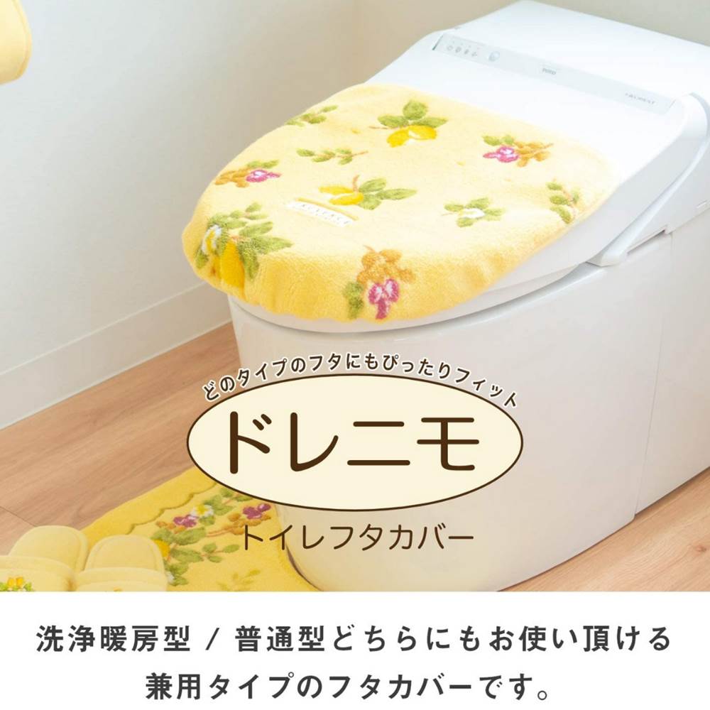 トイレ フタカバー 吸着タイプ Provence Ciel トイレフタカバー (多型対応タイプ) | 北欧 高級 西海岸 植物柄 緑色 黄色 グリーン イエロー ナチュラル インテリア 花柄 蓋カバー 洗浄 暖房 用 モダン シンプル ふかふか トイレ用品 トイレタリー 貼る