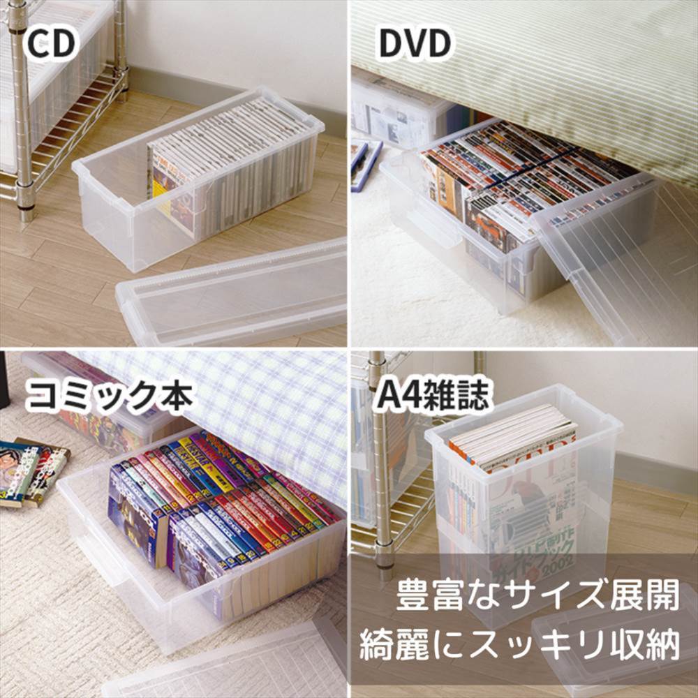 収納ボックス フタ付き プラスチック いれと庫 DVD用ワイド | プラスチック製 仕切り板付き キャスター付き 積み重ね クリア 天馬 ボックス ケース おすすめ 収納 いれと庫ワイド cd dvd cdケース dvdケース ケースボックス