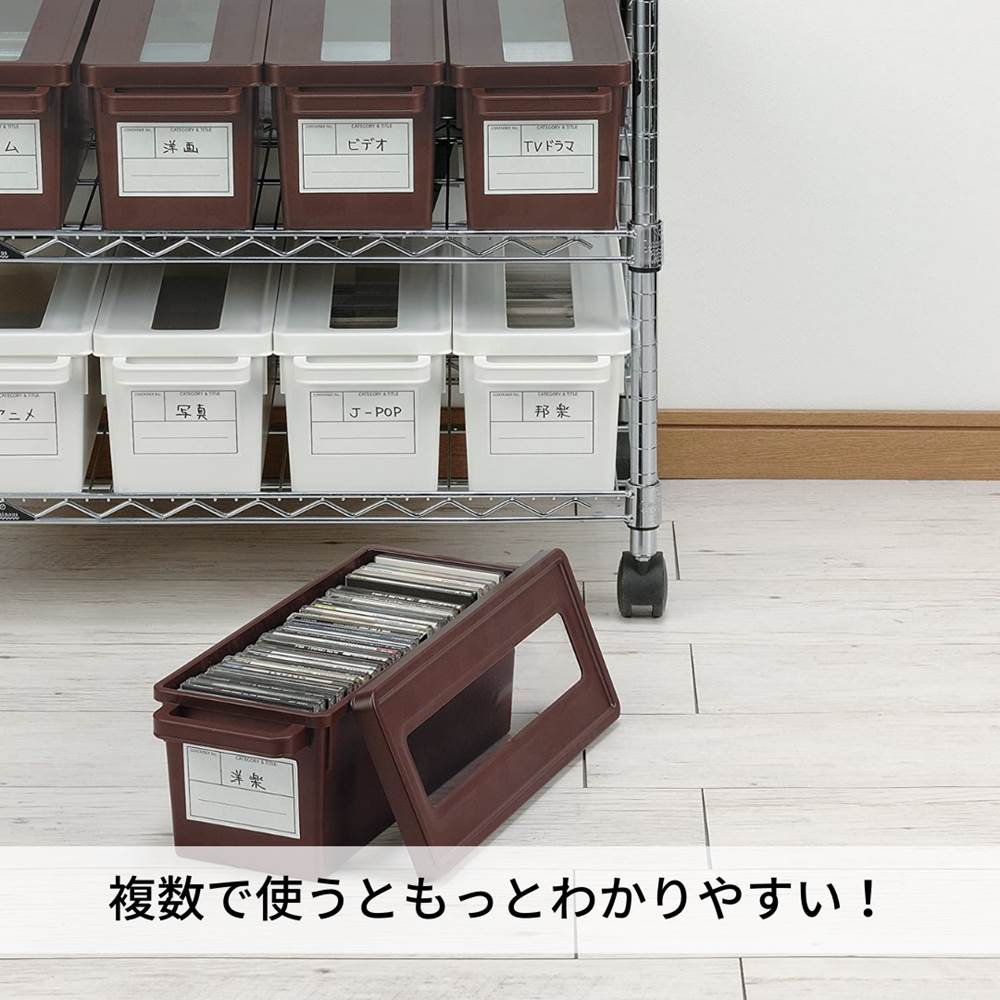 当社を装った偽サイトにご注意ください>> 【運送便について】基本的に ヤマト運輸 か 佐川急便 での配送となります。 ▼すぐ使えるクーポンをGET!▼ サイズ W44.9×D16.7×H16.4cm 本体重量 603g 材質 本体フタ・シキリ/ポリプロピレン 窓/ポリスチレン 原産国 日本 商品説明 CDをすっきり収納できるコンテナボックス。タイトルが簡単に探せる小窓付き。取っ手付なので出し入れしやすく見た目にもすっきり。仕切り付きなのでスペースが余ってもCDが倒れない。●小窓付きのフタだから、タイトルが簡単に探せるコンテナ●取っ手つきなので出し入れしやすく、見た目にもスッキリ収納●お部屋でオフィスで、ディスプレー感覚で自由に収納できる●メディアコンテナCD(厚さ10.5mm)なら36枚、DSソフトなら約23枚入ります●収納を余した状態のCDも倒れない仕切り付 他の選択肢も見てみる-kinds-本・CD・DVD収納-- 関連するカテゴリ --クローゼット・押入れ収納用品-- 関連するカテゴリ --小窓付きで中身がわかる -メディアコンテナ各種- 【CD36枚収納】451(CD)… 【CD36枚収納】451(CD)×4個セット… 【CD36枚収納】451(CD)×20個セット… 【DVD25枚収納】452(DVD&ゲーム&コミック)… 【DVD25枚収納】452(DVD&ゲーム&コミック)×4個セット… 【DVD25枚収納】452(DVD&ゲーム&コミック)×18個セット…