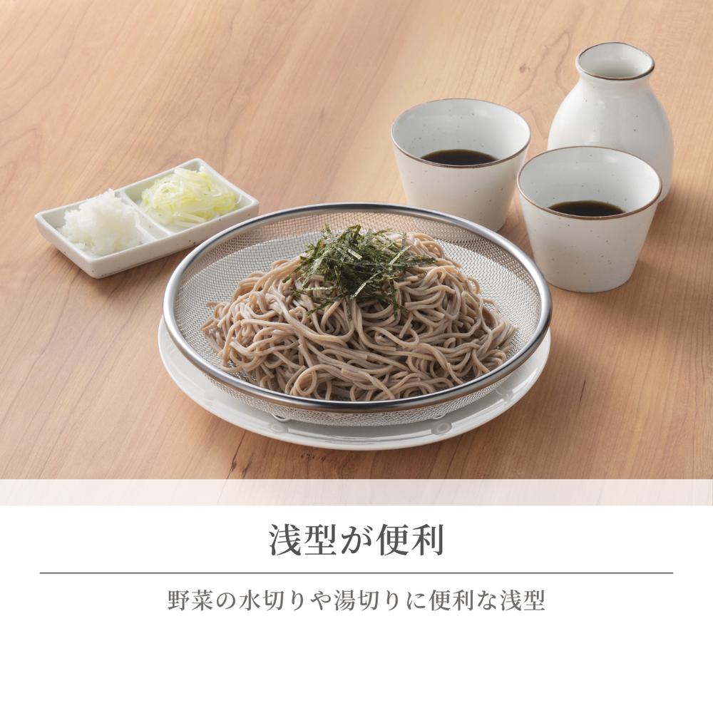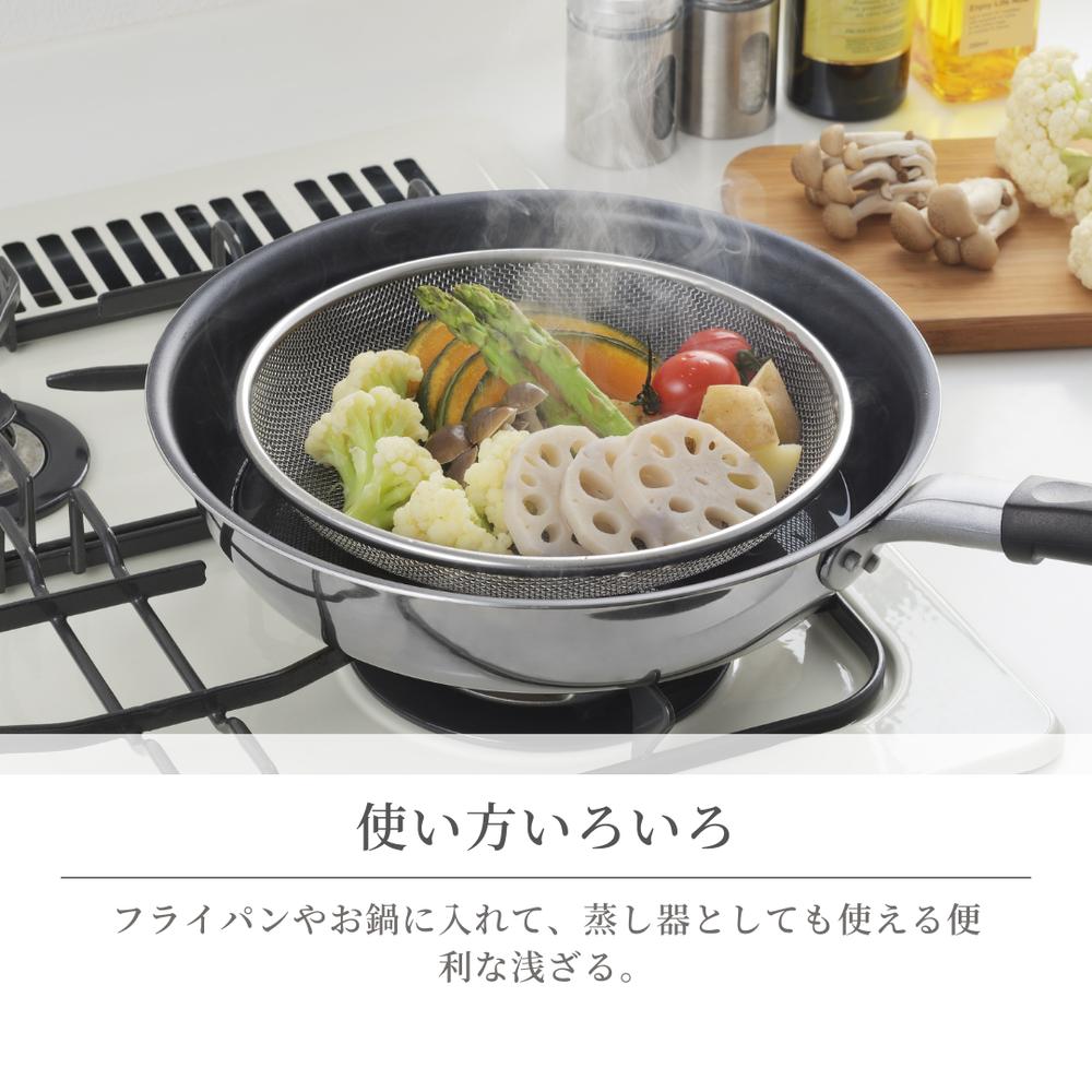 選べる3size 日本製 燕三条 ステンレス浅ざる [19cm/22cm/25cm] | ステンレス製 ステンレス ざる 蒸し器 水切り 蒸しかご 浅ザル 水切りザル 揚げ物 そばザル 麺ざる ザル 浅型ザル 油切り皿 盛り付け ステンレス網 フライ皿 メッシュザル 食洗機対応 ステンレス平ざる